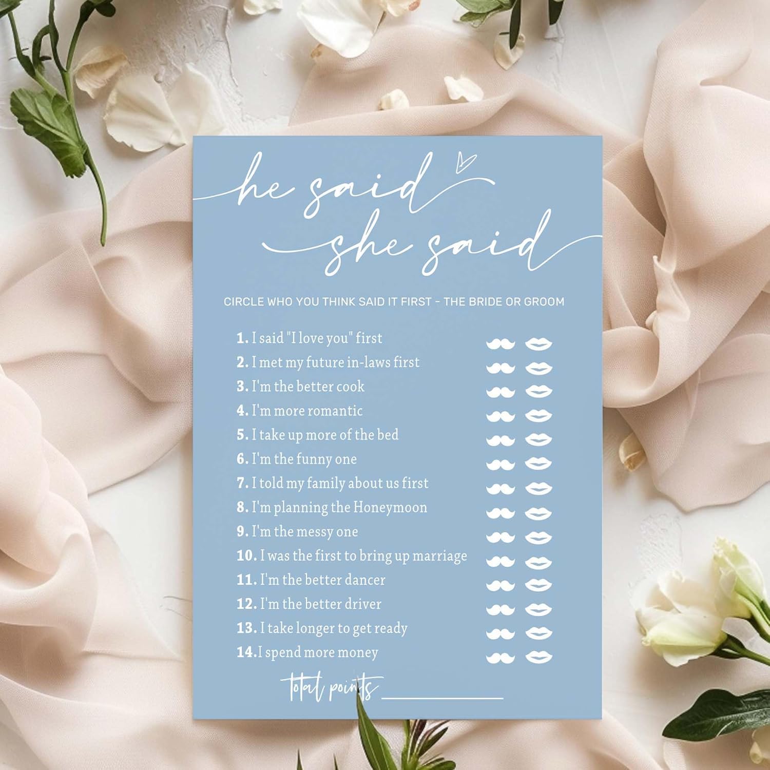 Bridal Shower Games Cards, Guest Who Said It, He Said She Said Game Cards, Bridal Shower Games 25 Guests, Engagement Party Wedding Games for Guests, Minimalist Blue Wedding Party Supplies - B07