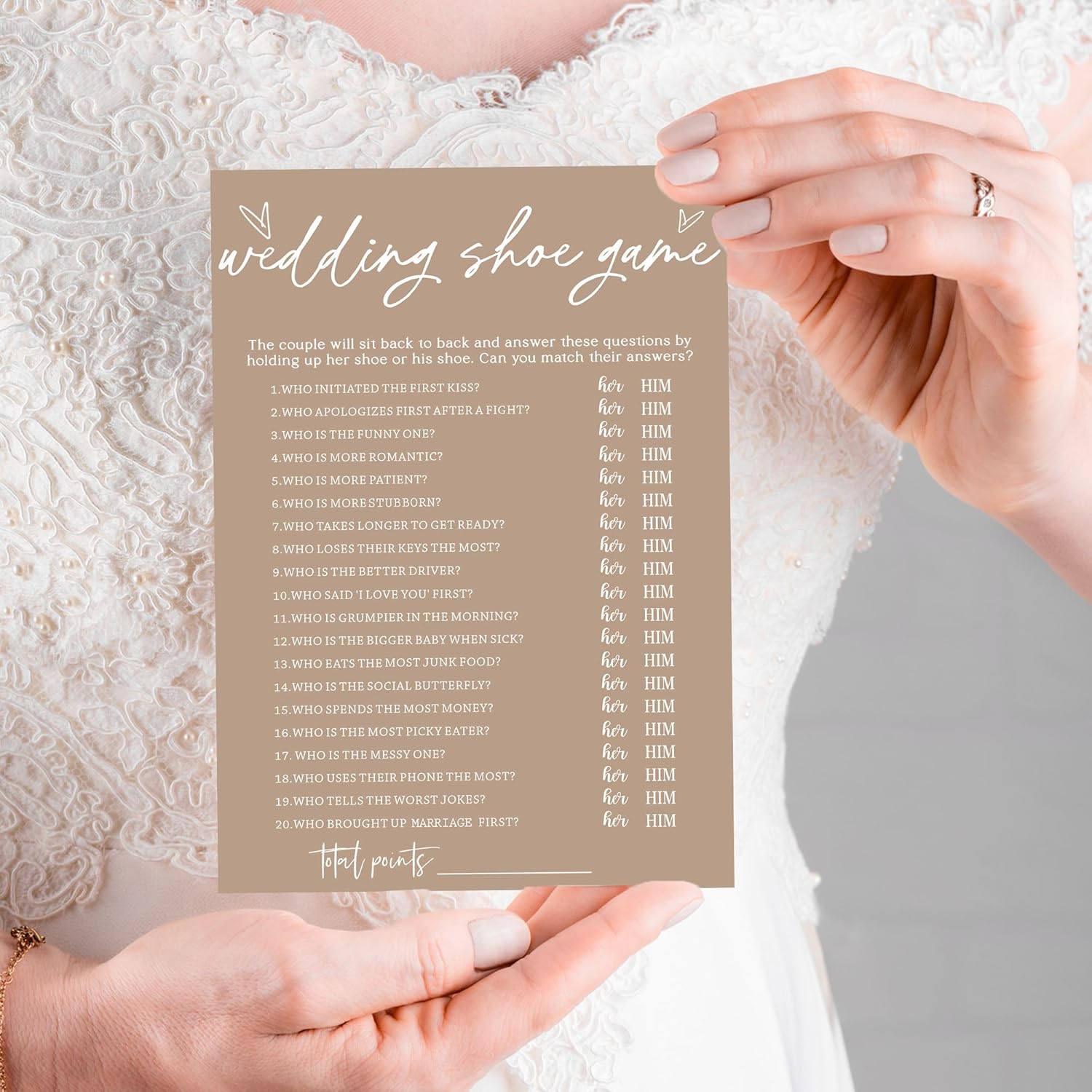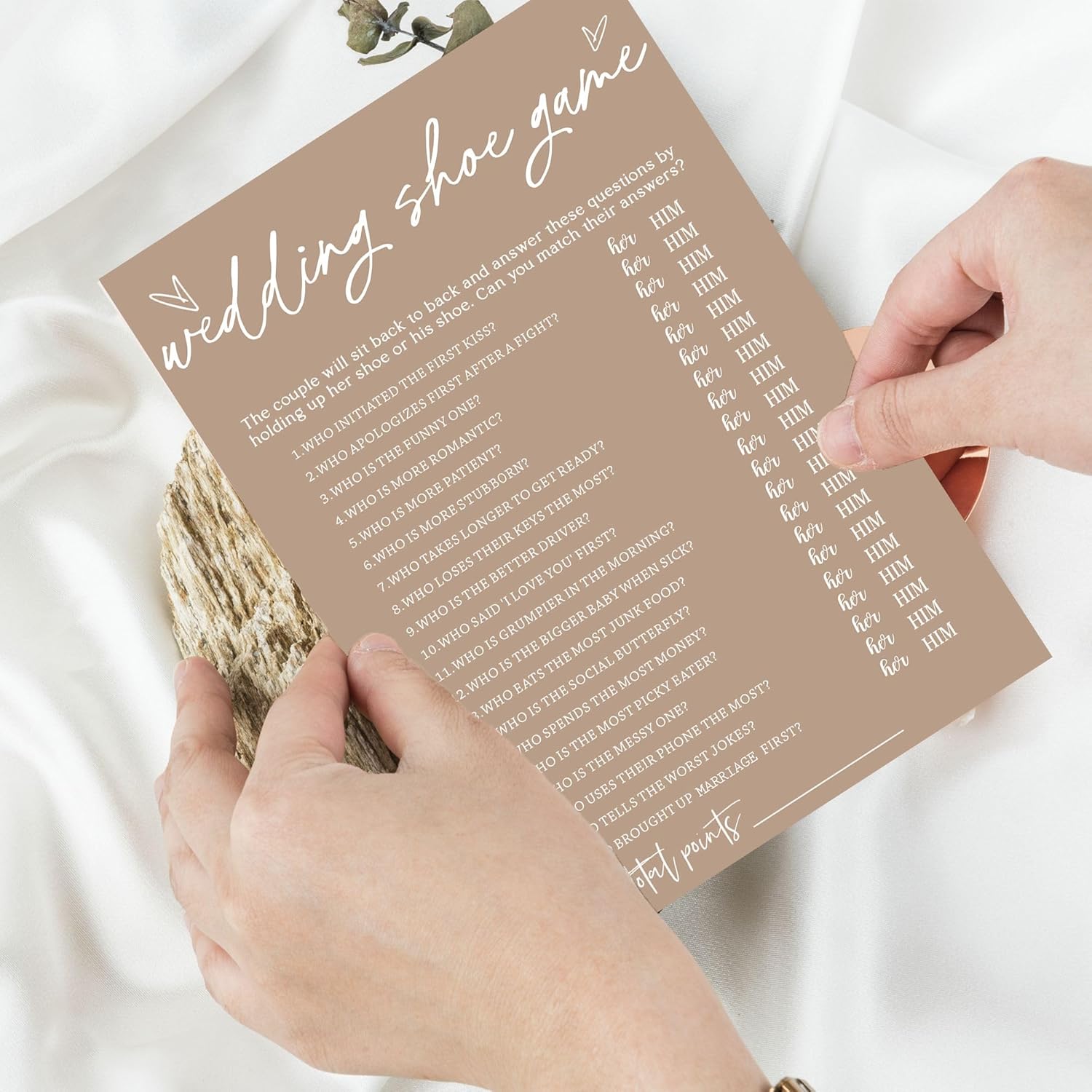 Bridal Shower Games Cards - Wedding Shoe Game for 25 Guests, Engagement Party Games, Minimalist Brown Party Supplies - D04
