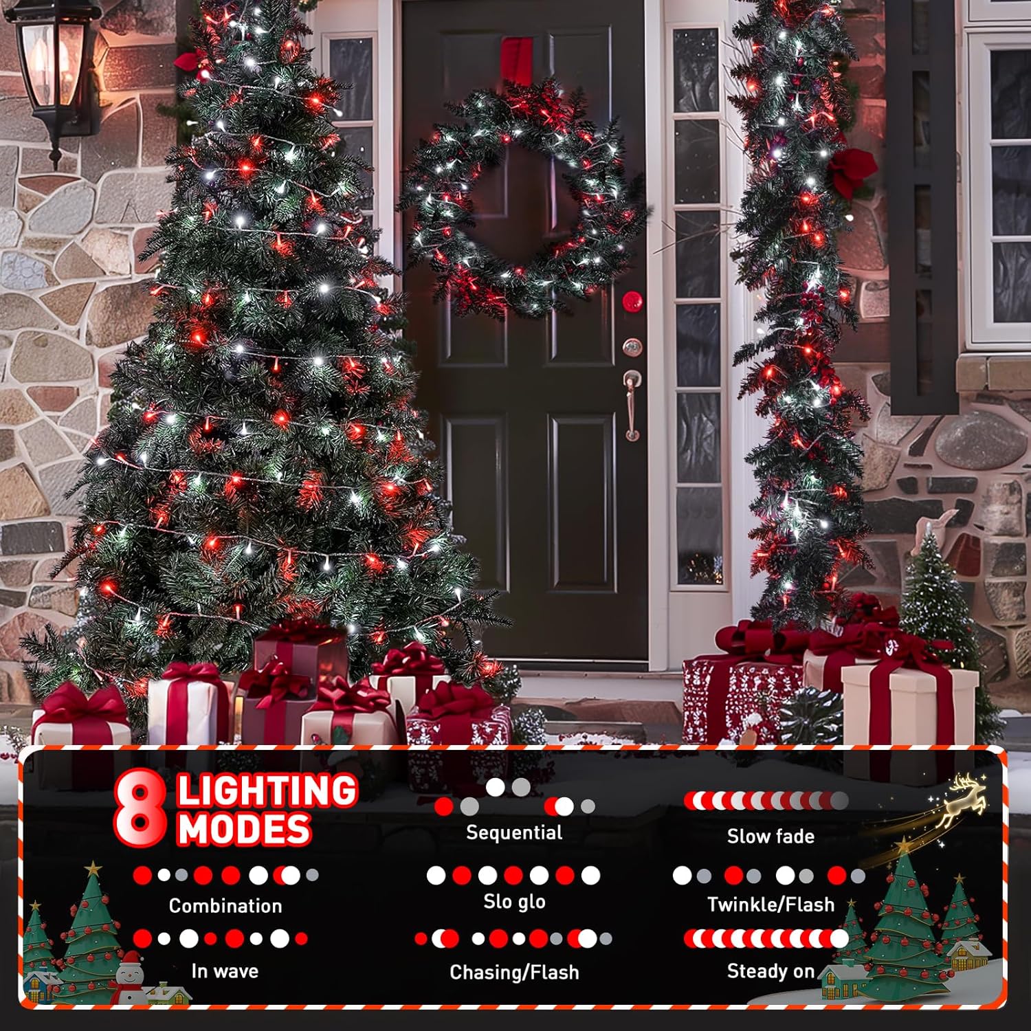 JMEXSUSS 200 LED Red and White Christmas Lights Outdoor, 66ft Halloween String Lights Indoor Clear Wire, Christmas Tree Lights Plug in for Bedroom Tree Christmas Party Decorations