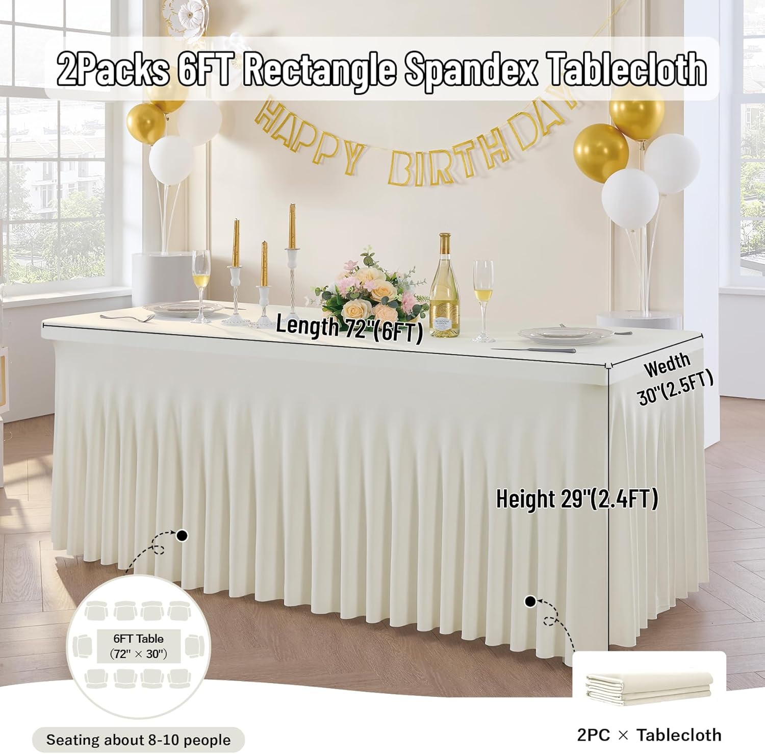 - 【Set of Spandex Rectangle Tablecloth】 You will receive 2 Pack Wavy ivory spandex table clothes for 6 foot rectangle tables. Manteles de mesa de tela para fiestas.