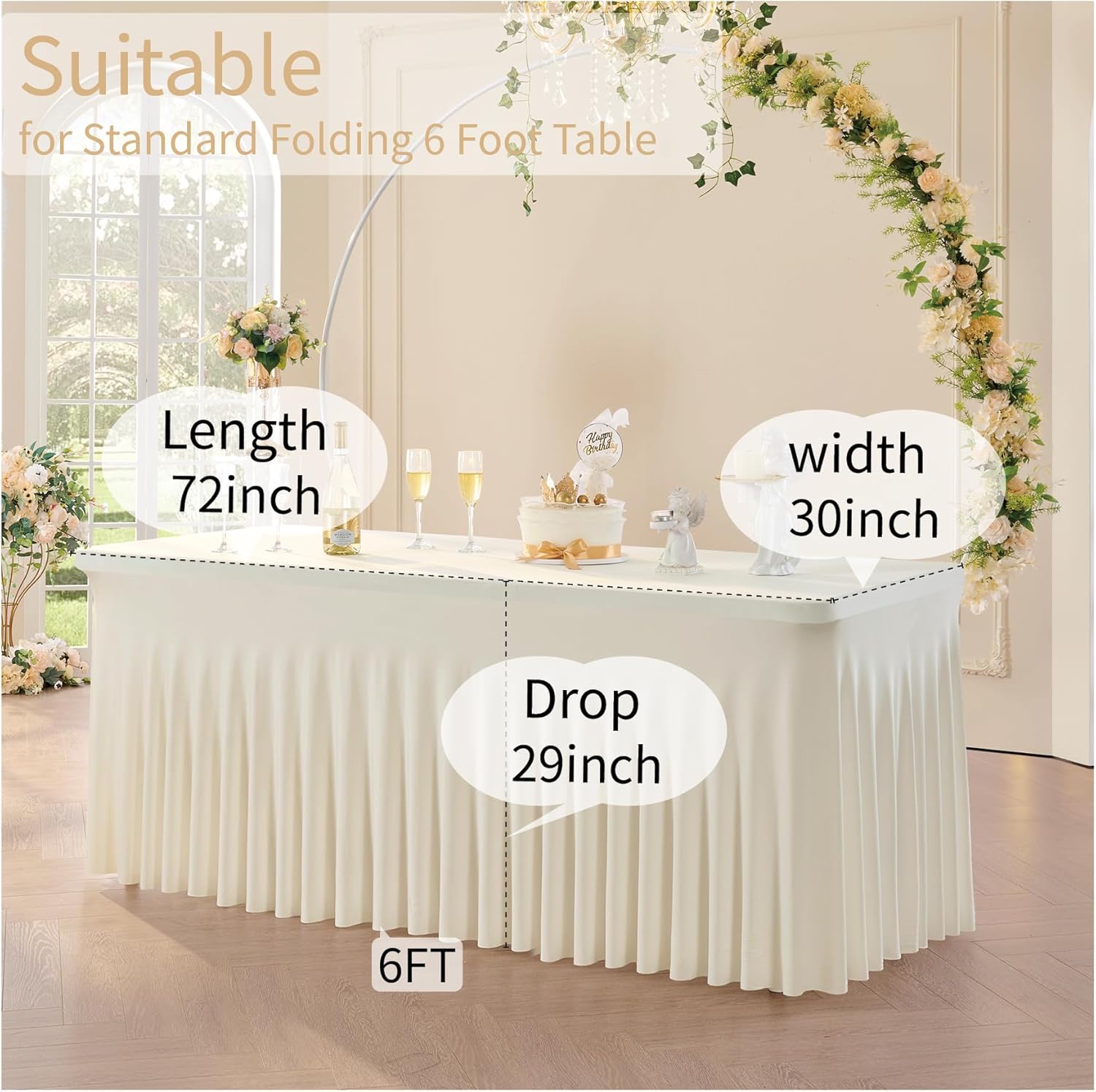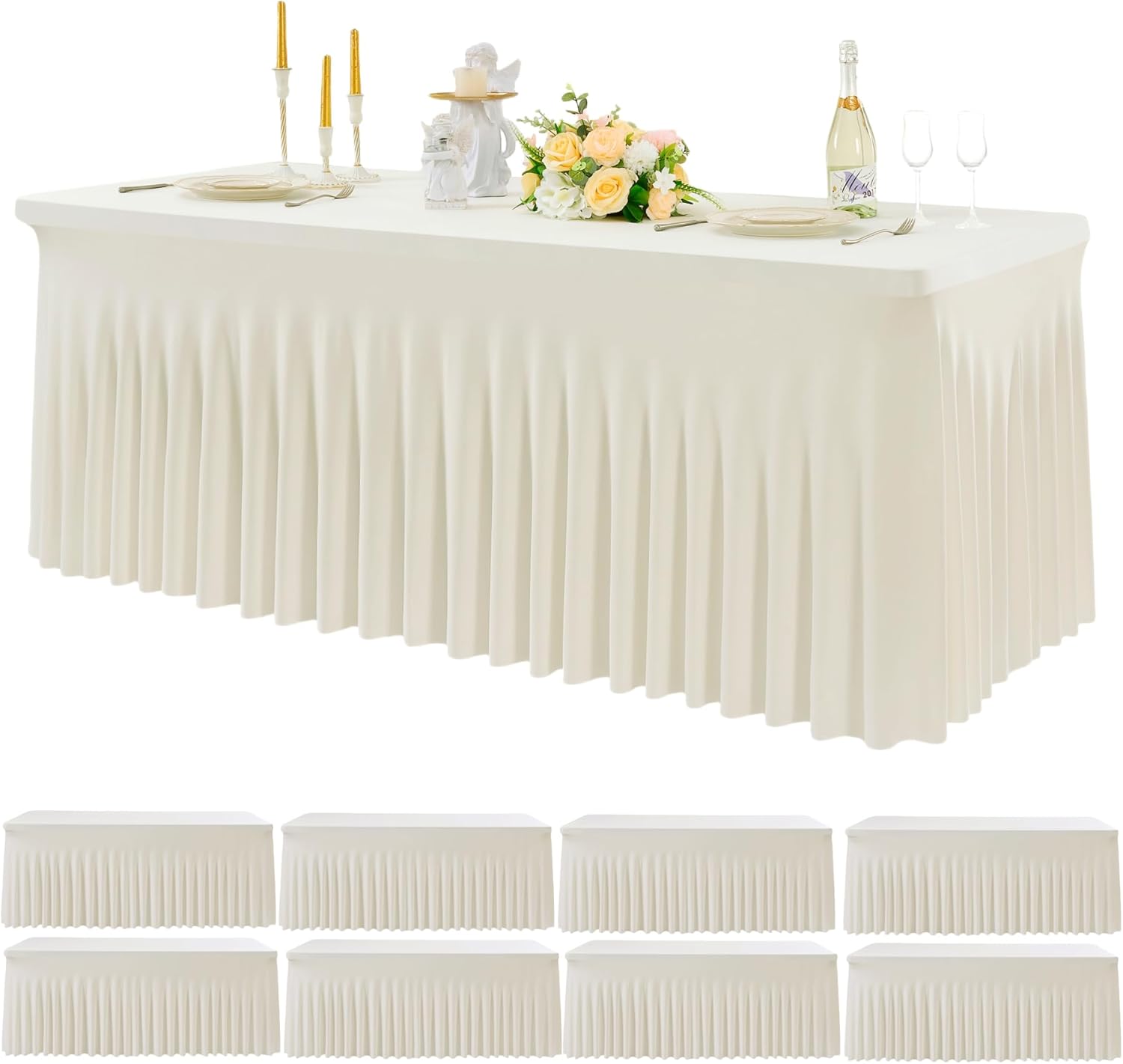 - 【Set of Spandex Rectangle Tablecloth】 You will receive 8 Pack Wavy ivory spandex table clothes for 6 foot rectangle tables. Manteles de mesa de tela para fiestas.