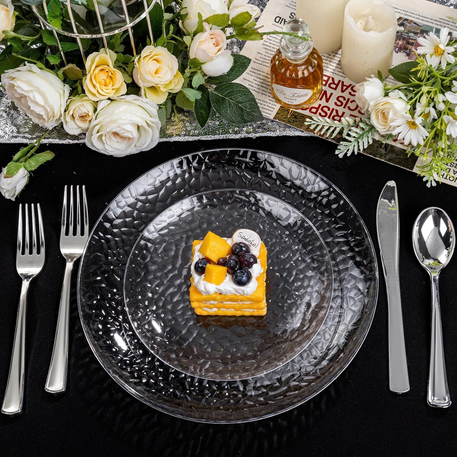 - Elegant Touch: Elevate your table settings with our hammered design that adds a touch of sophistication. These beautiful clear plastic plates for weddings and parties will impress your guests without breaking the bank!