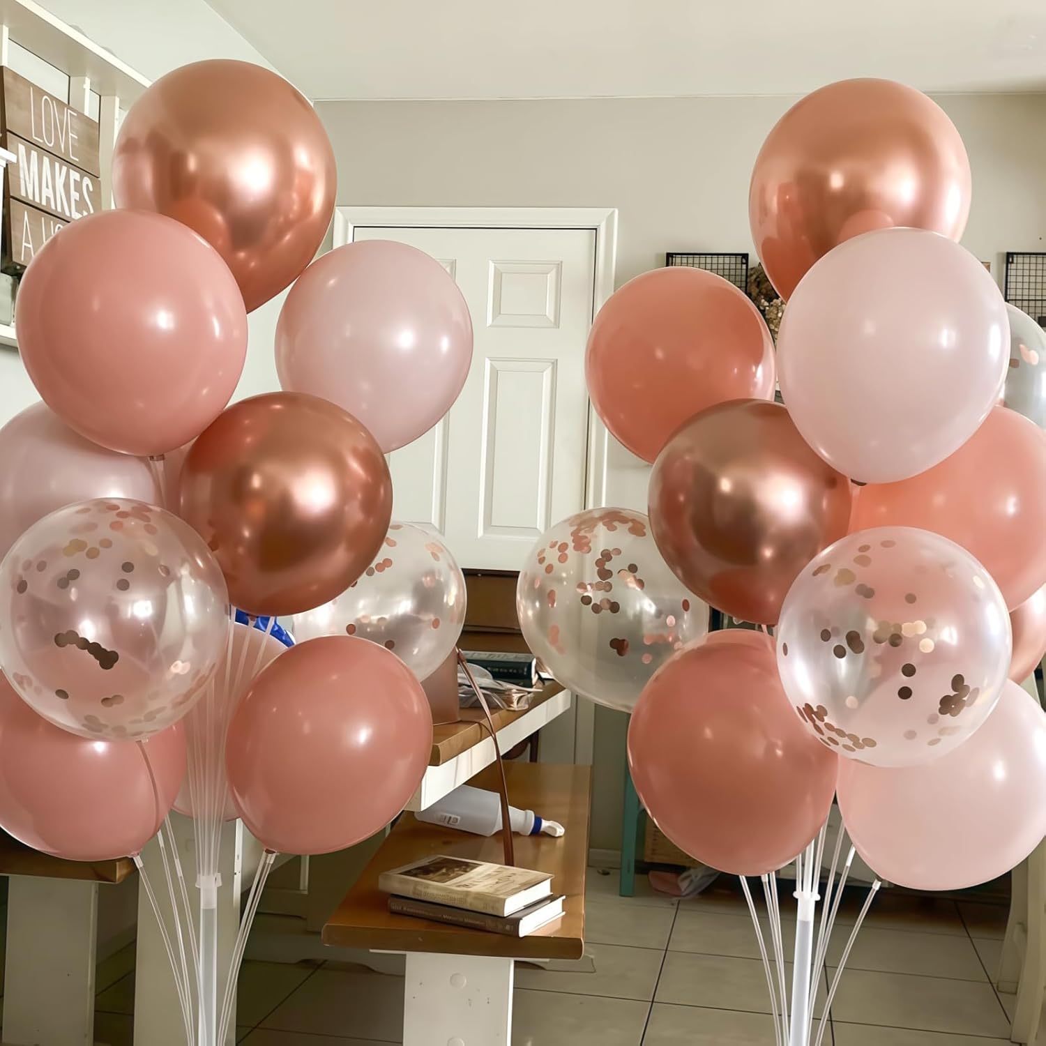 - 🌸 Dusty Pink Balloons Set: This is a beautiful bright balloon, which contains balloons of different colors. Include 12 inch retro blush pink balloon(15pcs), white sand balloon(15pcs), dusty pink balloon(15pcs), metallic rose gold balloon(10pcs), gold confetti balloon(5pcs), 2 rolls of ribbons. You can use these different shades of nude pink balloon kits, DIY balloon combinations to create your birthday party.