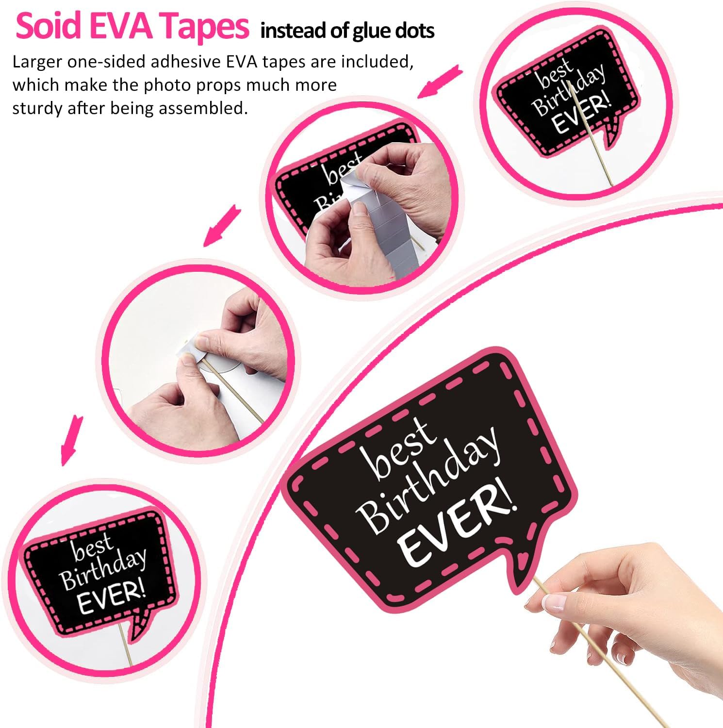- ๐ใAwesome Hot Pink Girl Birthday Party Suppliesใ: You will get 31pcs photo booth props toppers in pink, rose glitter, black and hot pink, high-resolution digital printing with eye-catching details and true-to-life colors. No reflections or fading. Lightweight and easy to carry.