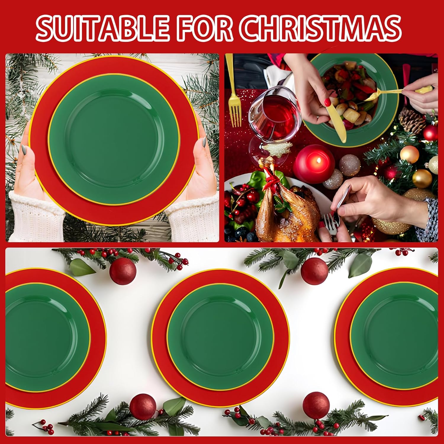 SUT 350pcs Green and Red Plastic Plates For 50 Guests, Plates Disposable Heavy Duty, Plastic Plates Disposable, Party Plates And Cups And Napkins Sets, Disposable Plates for Party and Wedding