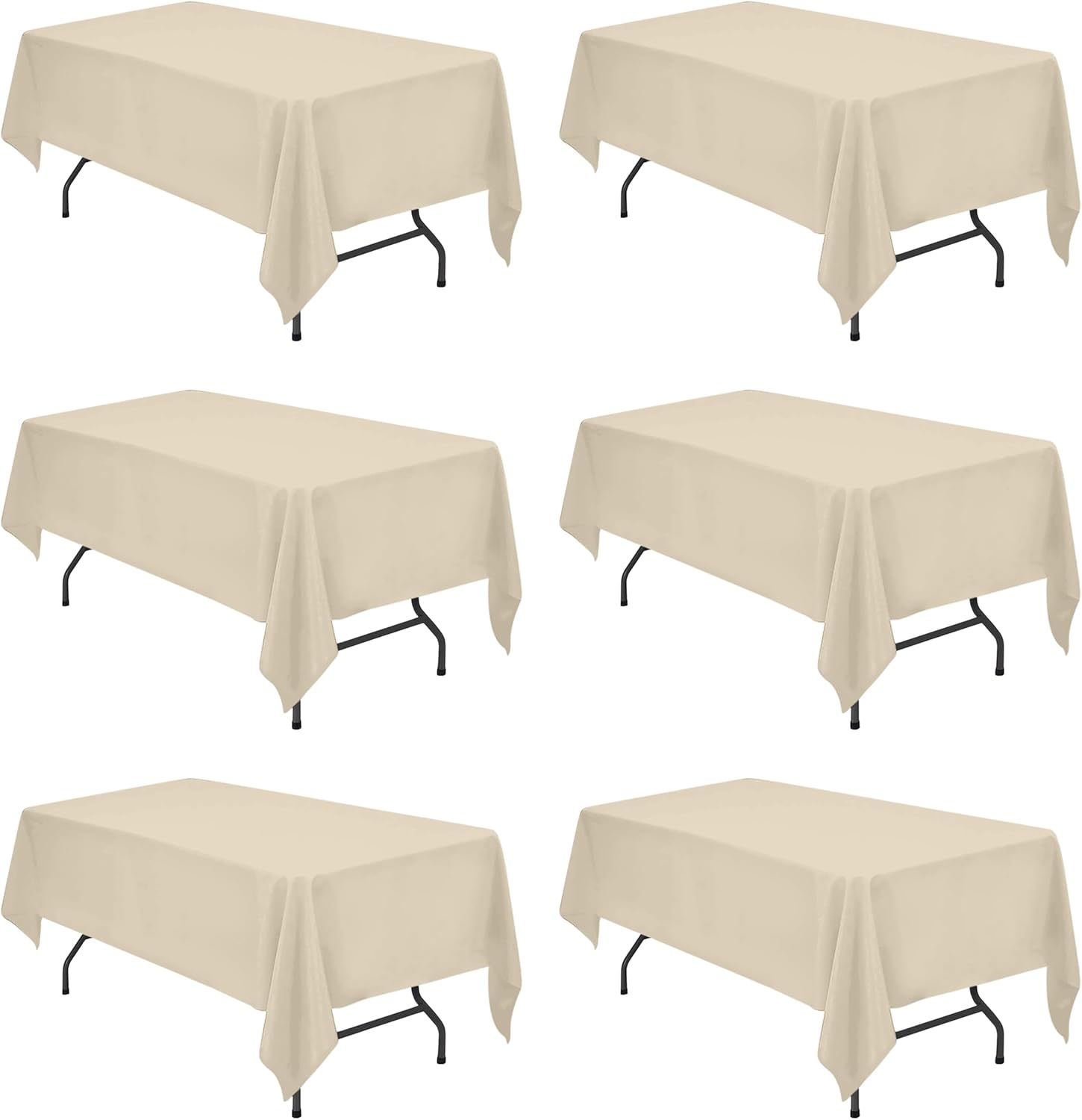 BRILLMAX 6 Pack Beige Tablecloths for 6 Foot Rectangle Tables 60 x 102 Inch - 6ft Rectangular Bulk Linen Polyester Fabric Washable Cloth Cover for Wedding Reception Banquet Birthday Party