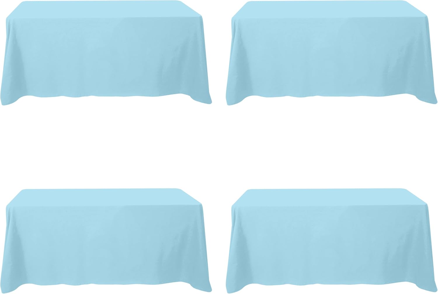 BRILLMAX 4 Pack Light Blue Tablecloths for 6 Foot Rectangle Tables 90 x 132 Inch - 6ft Rectangular Bulk Linen Polyester Fabric Washable Cloth Cover for Wedding Reception Banquet Birthday Party