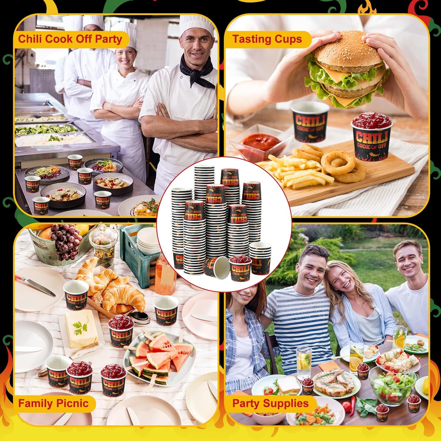 - Save time with easy clean up: this chili cook off party supplies are disposable, guaranteeing no time consuming cleanup after the party; Enjoy the event, and let these cups take care of the after party mess; The nice product for those seeking ease along with style