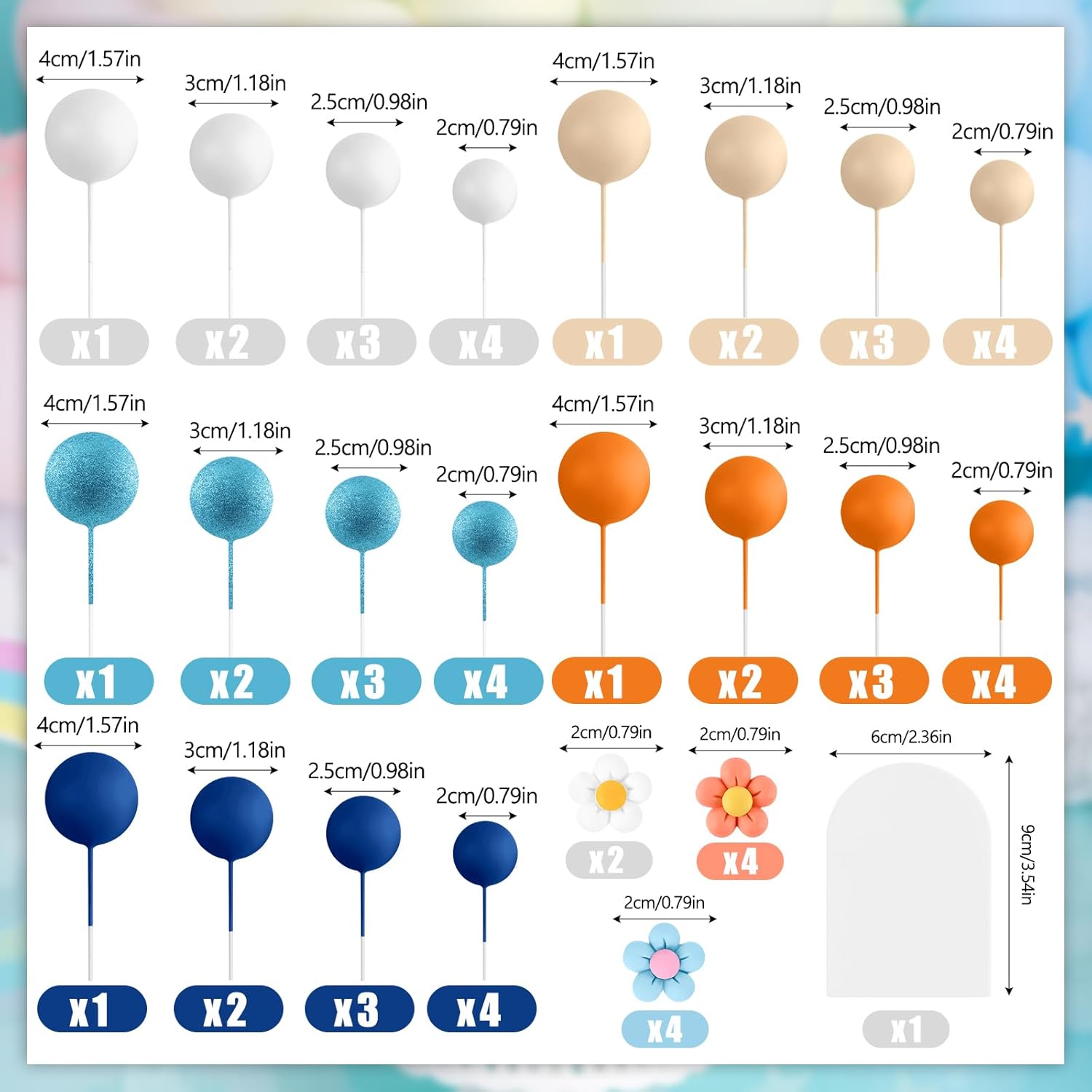 - Quantity: The balls cake topper set including 50 pieces of cake balls in 5 color, 10 flower cake decoration and 1 acrylic decorate board