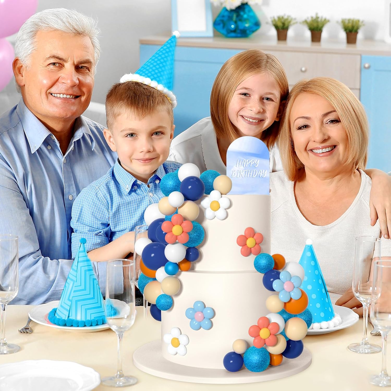61 Pcs Boho Cake Topper Balls Decorations Mini Balloon Cake Topper Retro Hippie Daisy Flower Acrylic Ball Cake for Birthday Party Wedding Rainbow Baby Shower (Blue Orange)