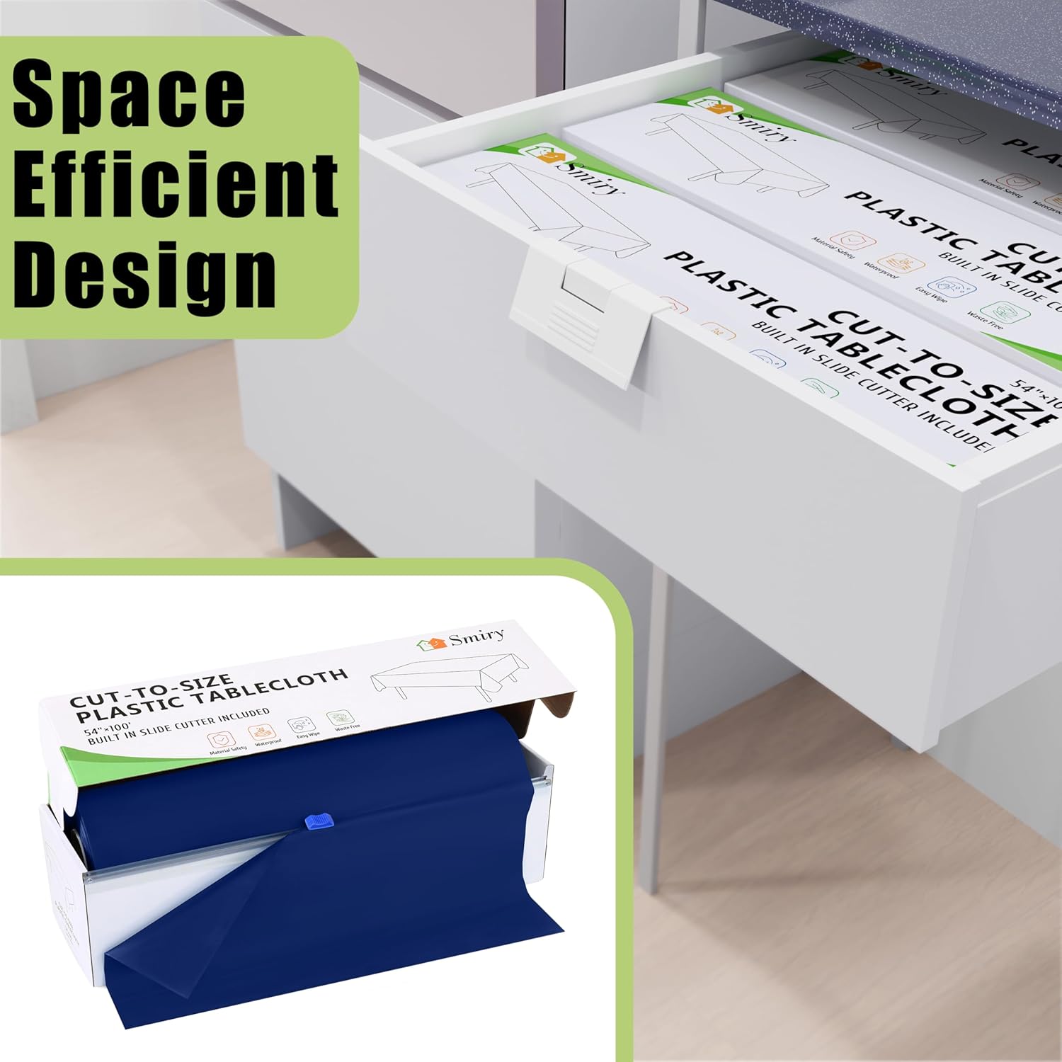 Smiry 54 Inch x 100 Feet Disposable Table Cover Roll, Navy Plastic Table Cloth in Cut-to-Size Box with Slide Cutter, Waterproof Rectangle Tablecloths for Weddings, Banquets, Outdoor