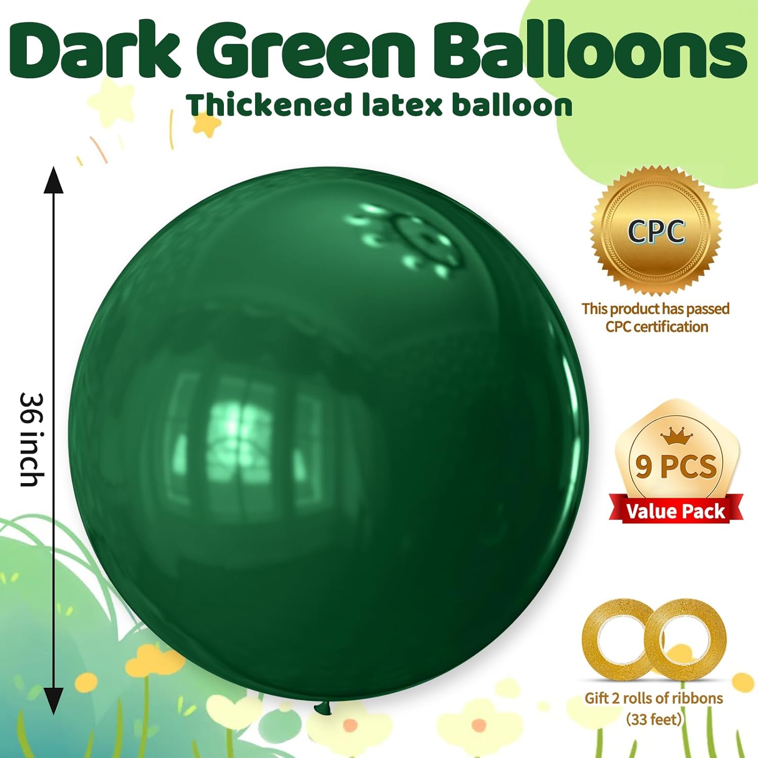 - 【Set Includes】- 9 large 36-inch deep green balloons, ideal for birthday decorations, party decorations, wedding decorations, and baby shower decorations.