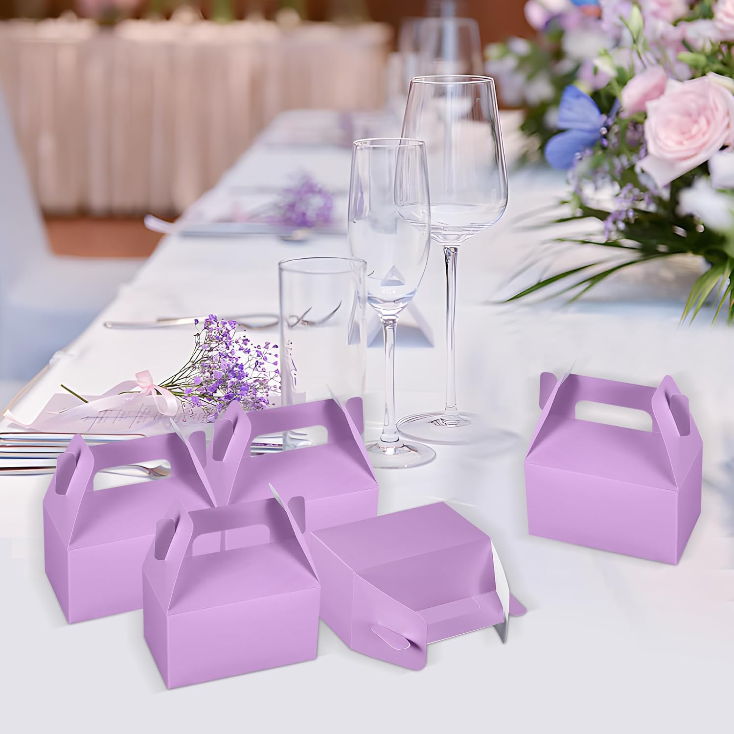 XAGLVV 24 Pack Purple Gable Boxes with Handles 6.2x3.5x3.5 Inch Paper Party Favor Gift Box for Birthday Baby Shower Graduation