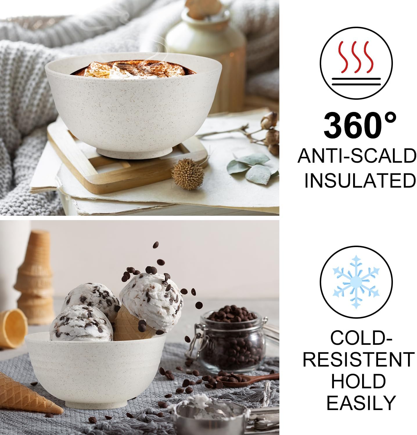 10oz Wheat Straw Bowls Set of 6, Unbreakable Ice Cream Bowl Sets for Kids, Snack Bowls Dishwasher and Microwave Safe