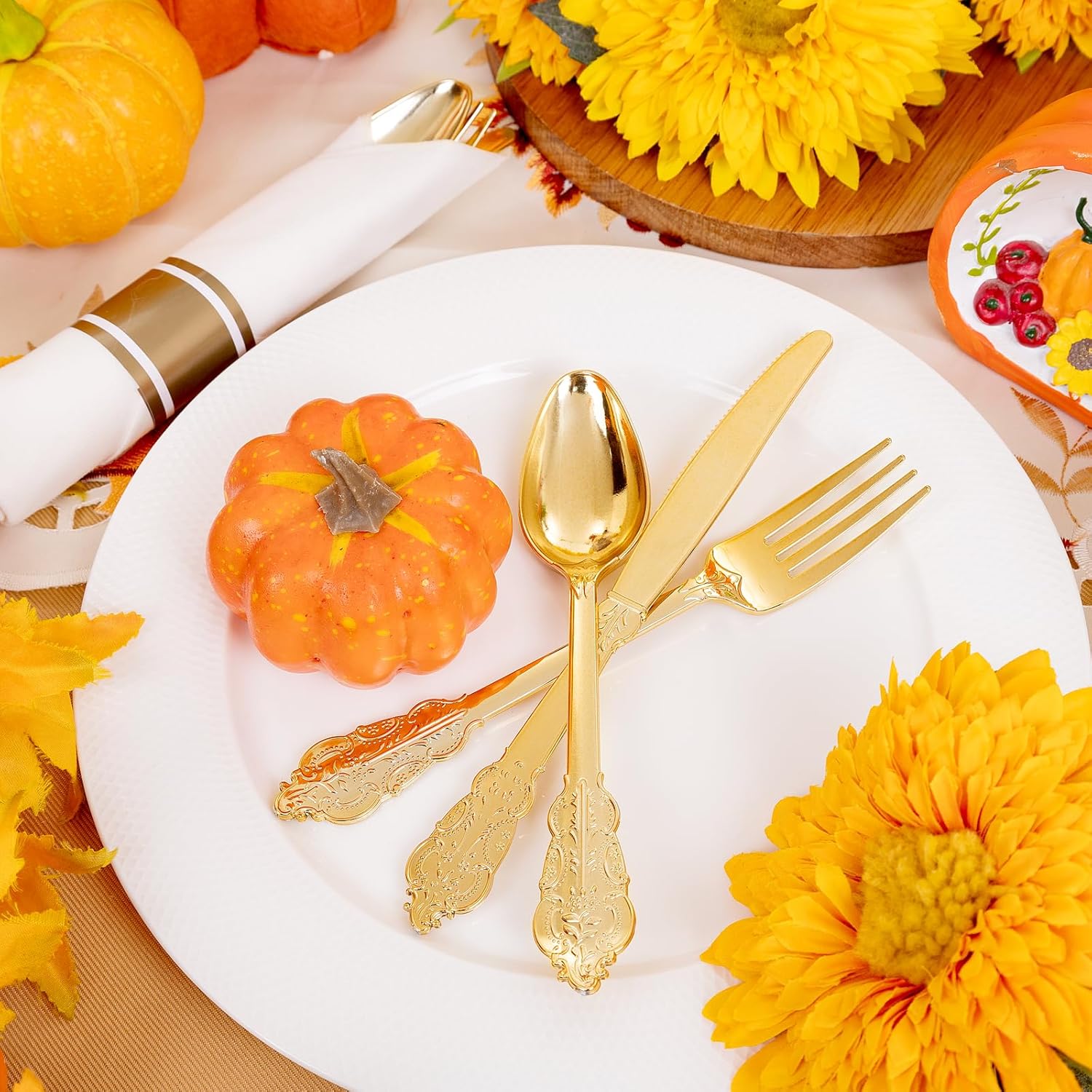 - Convenient Pre-Rolled Design: Our gold pre rolled silverware set disposable save you time in setting the table. You can throw the gold silverware set away after use to reduce the stress of clean up