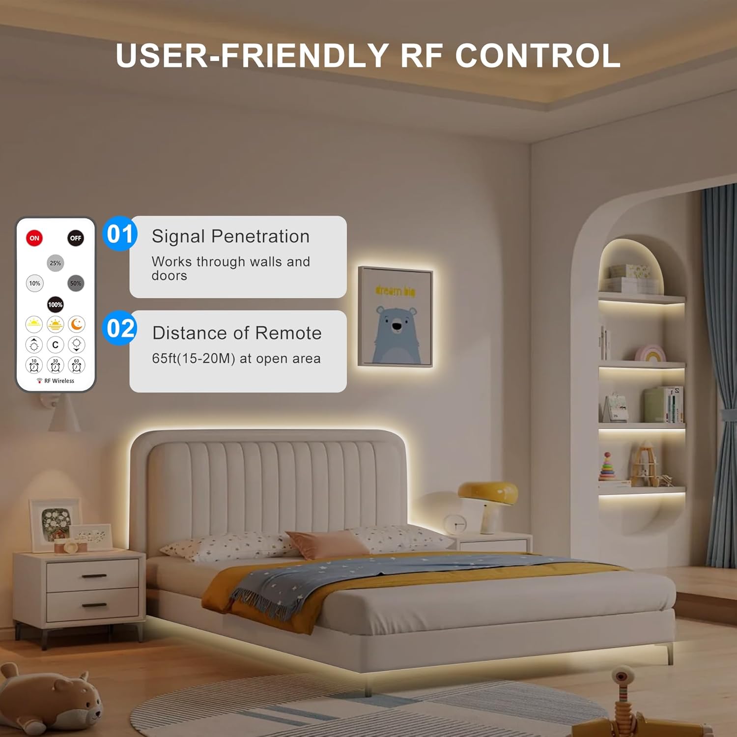 - Widely Use: Built-in COB technology, perfect for illuminating your living room, bedroom, kitchen, cabinet, shelf, closet, desk, bed frame, mirror, stair