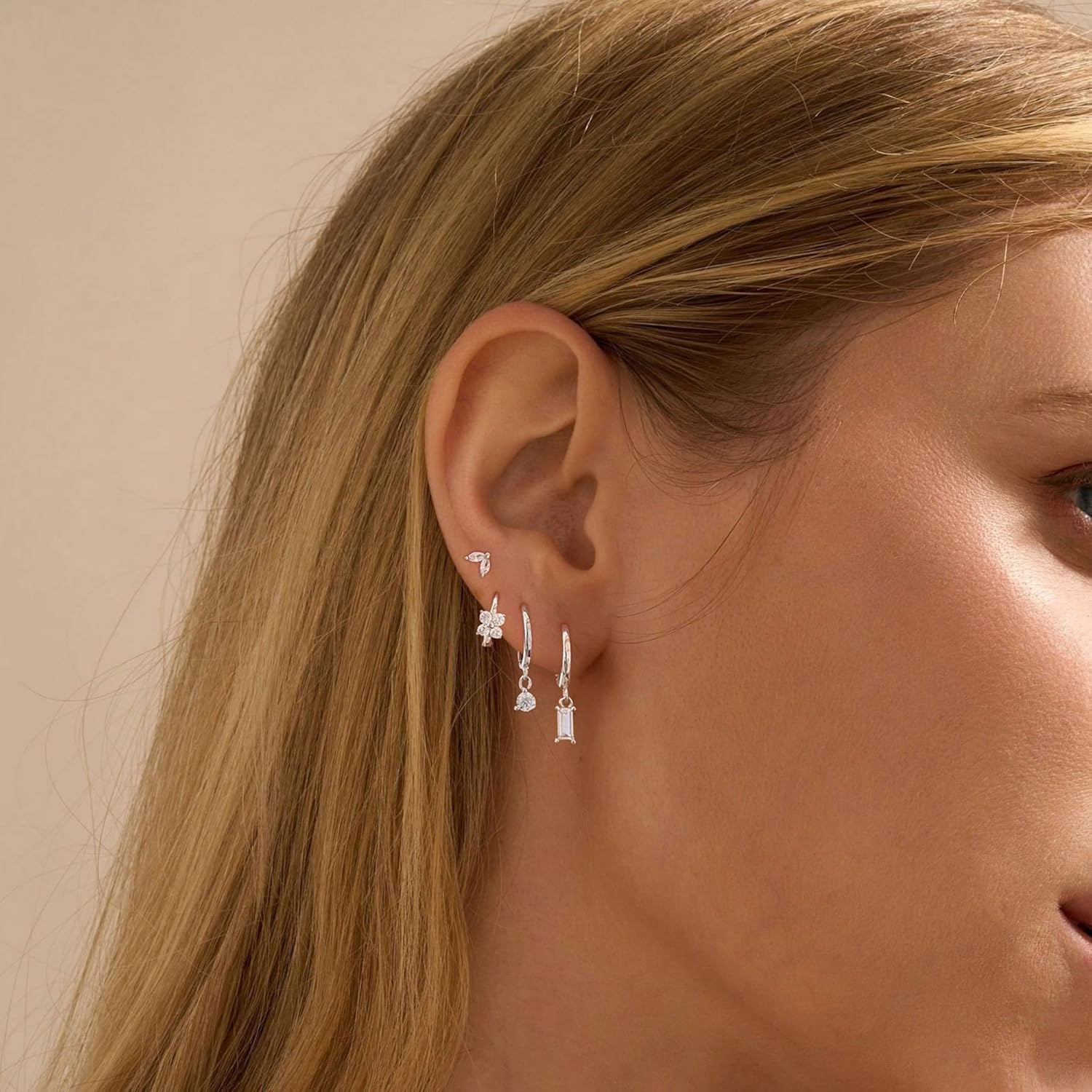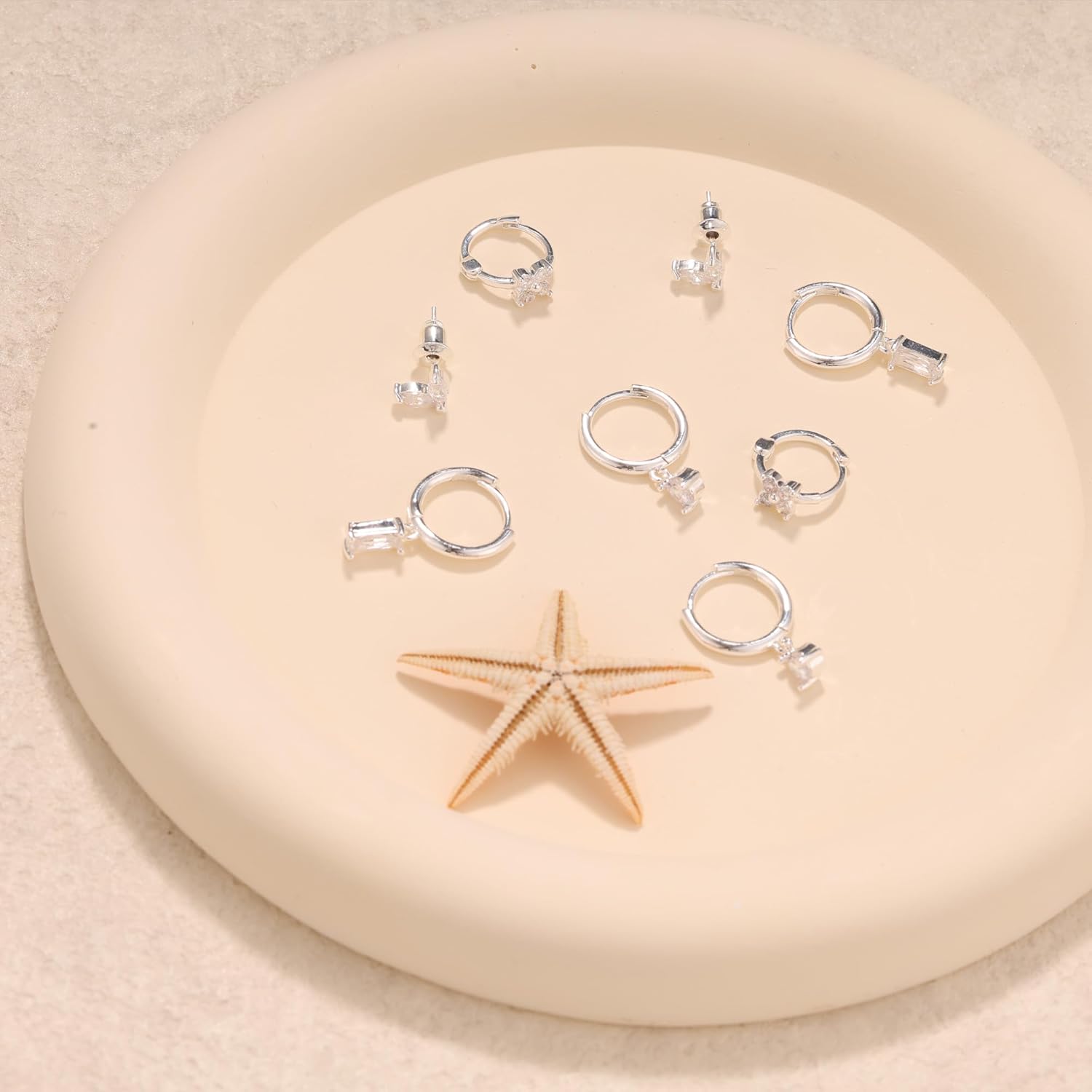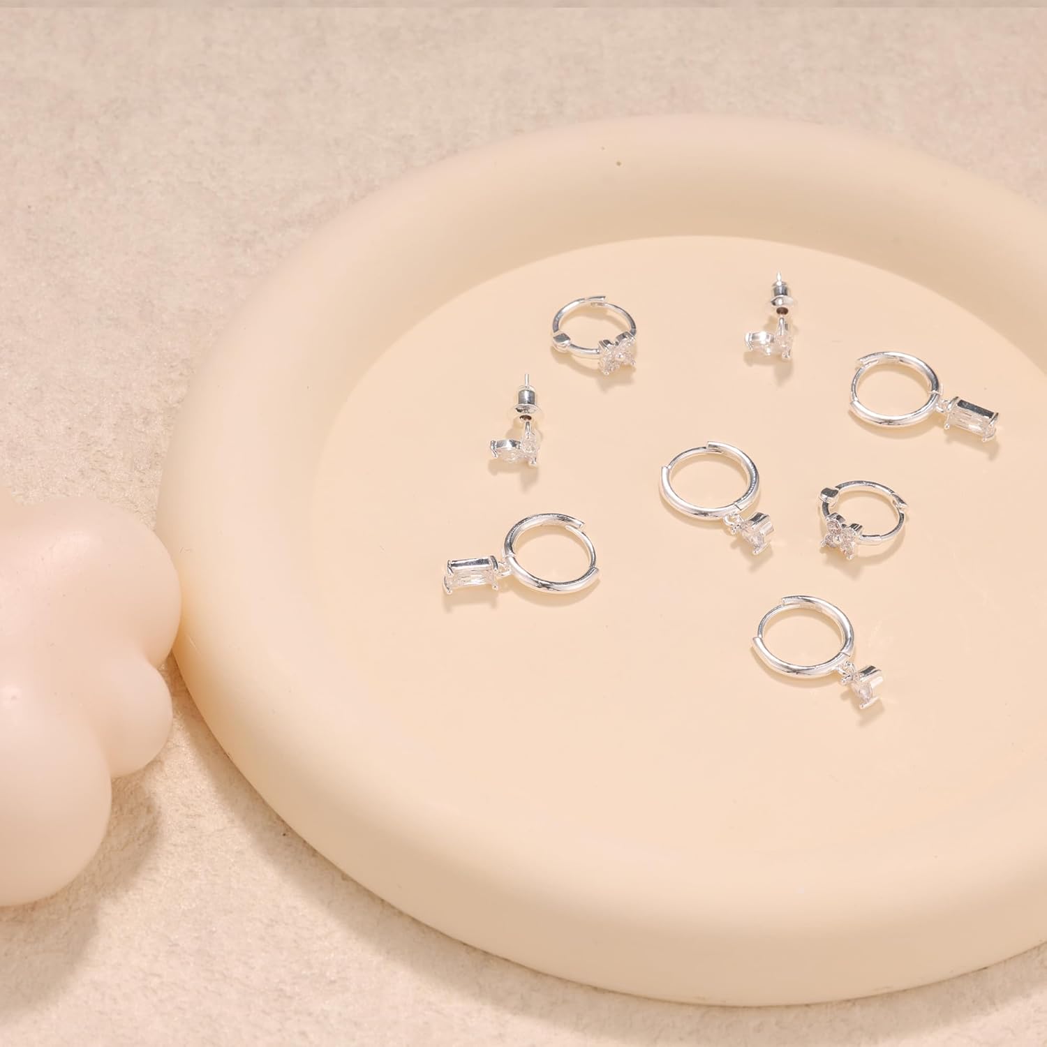 - Silver Earrings Set Design : The cute hoop earrings look light and stylish, It brings a new look to the ears, Different styles of earrings can be adjusted to the ears at will to achieve a perfect match, These silver hoop earrings sets have flexible clasps and are very easy to wear