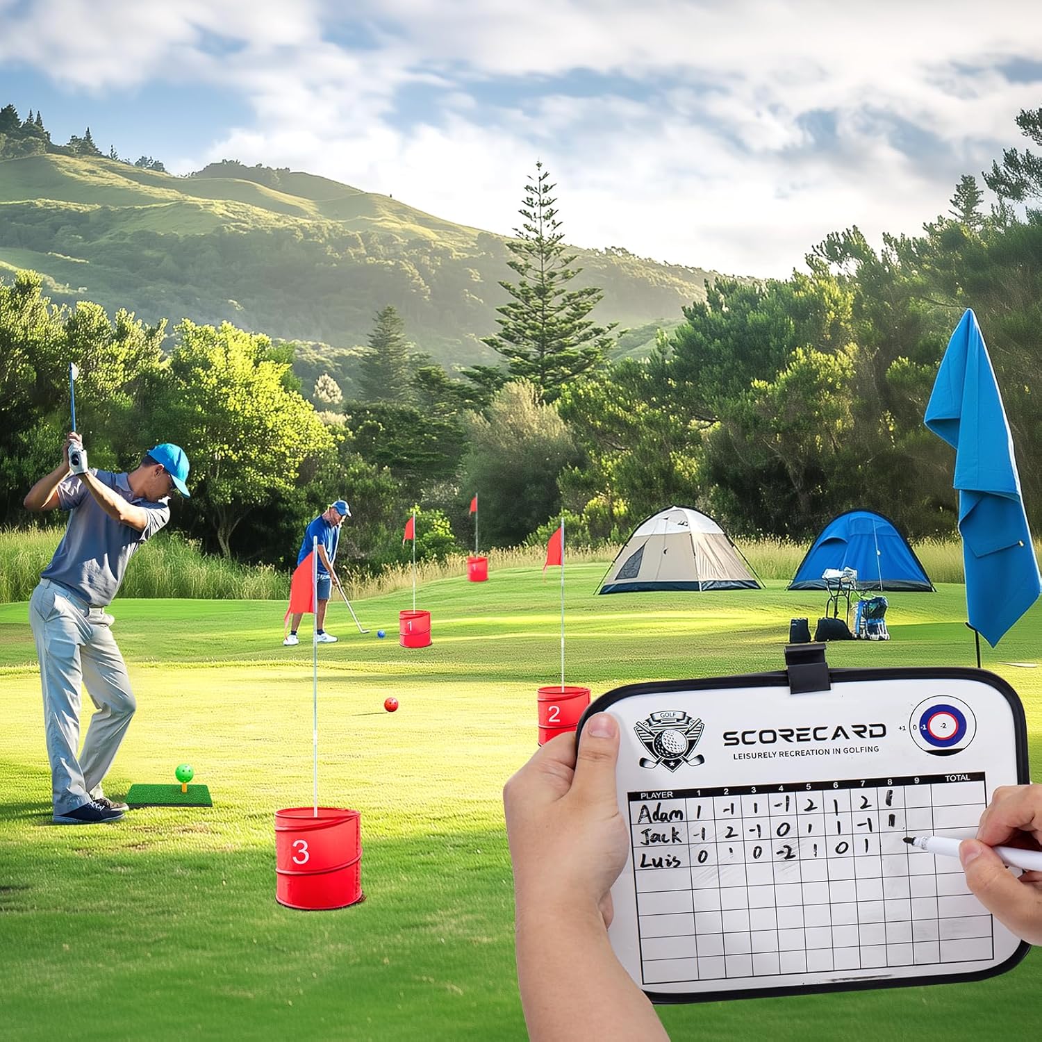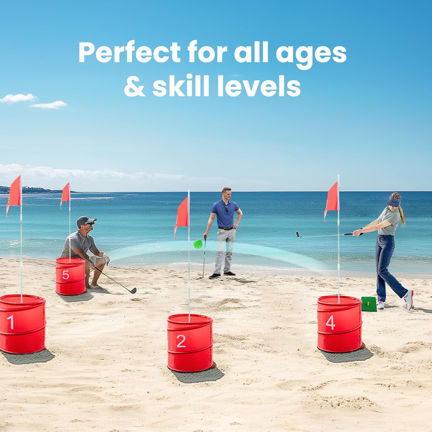 - Customizable Course and Rules: Set up your bucket golf course to fit any space, indoors or outdoors. Adjust the number of holes and the rules to suit various skill levels, keeping each golf yard game fresh and engaging for everyone