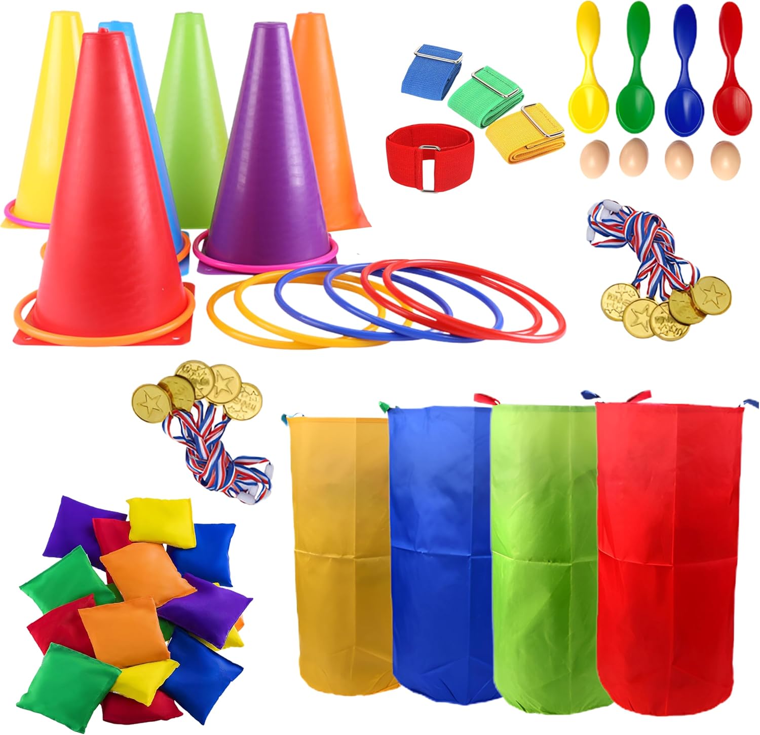 - Perfect Outdoor Fun for all Ages: Whether it’s birthday games for kids party, field day games, outdoor & indoor games, this versatile set brings people together. Great for relay race games for kids, adult potato sack race bags, yard games or ring toss games for adults — everyone can join the action!