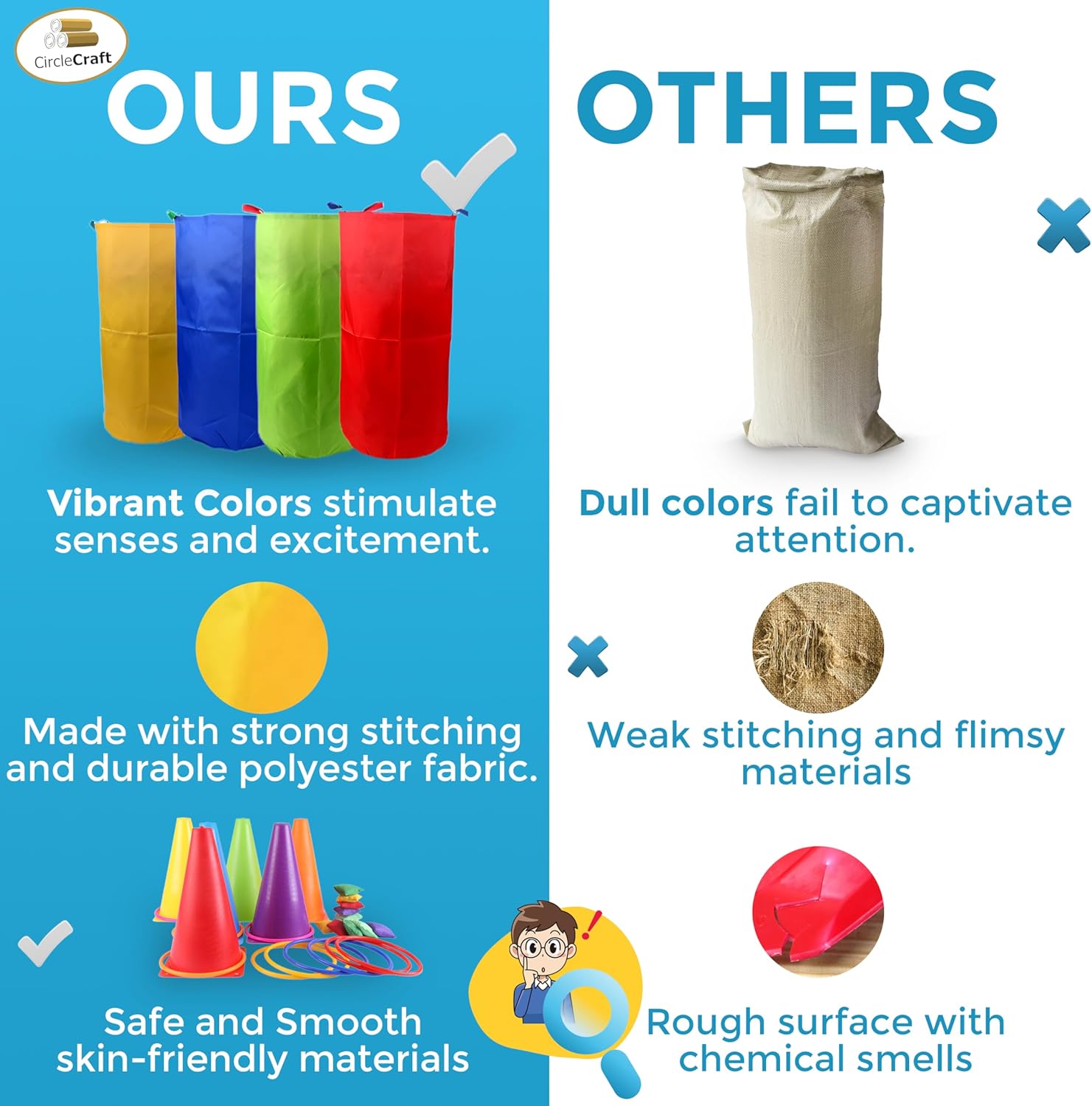 - Durable & Safe Quality Materials: Crafted from durable polyester and strong stitching, these bean bag game sets & potato sack race bags for adults and kids are built to last through countless running games and relay race games. Every piece in this outdoor birthday party games set is perfect for carnival games for adults and kids, field day games and picnic games.