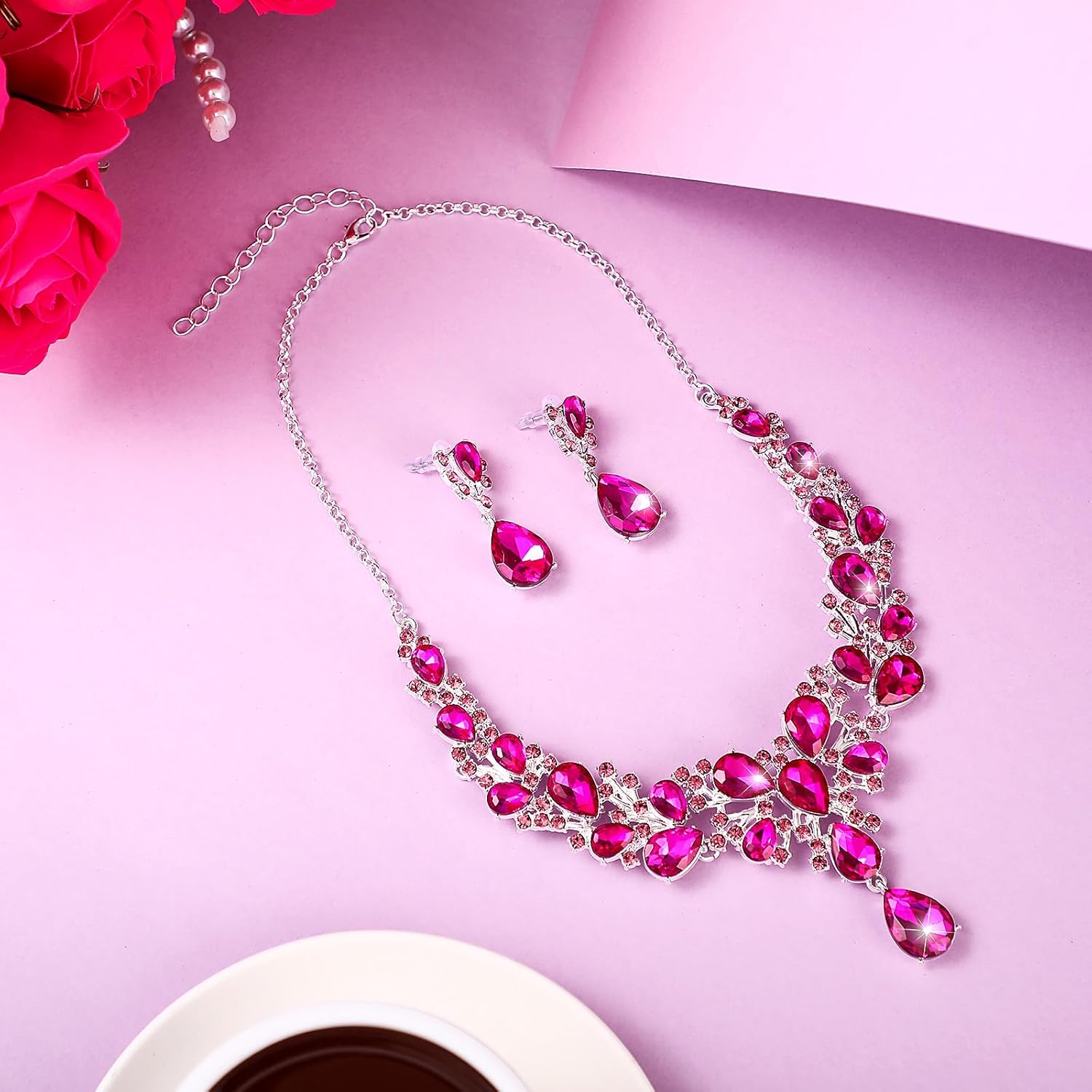- What you'll get: 1 piece teardrop cluster crystal necklace and 1 pair teardrop earrings, this special design is born to match the clothes and your beauty