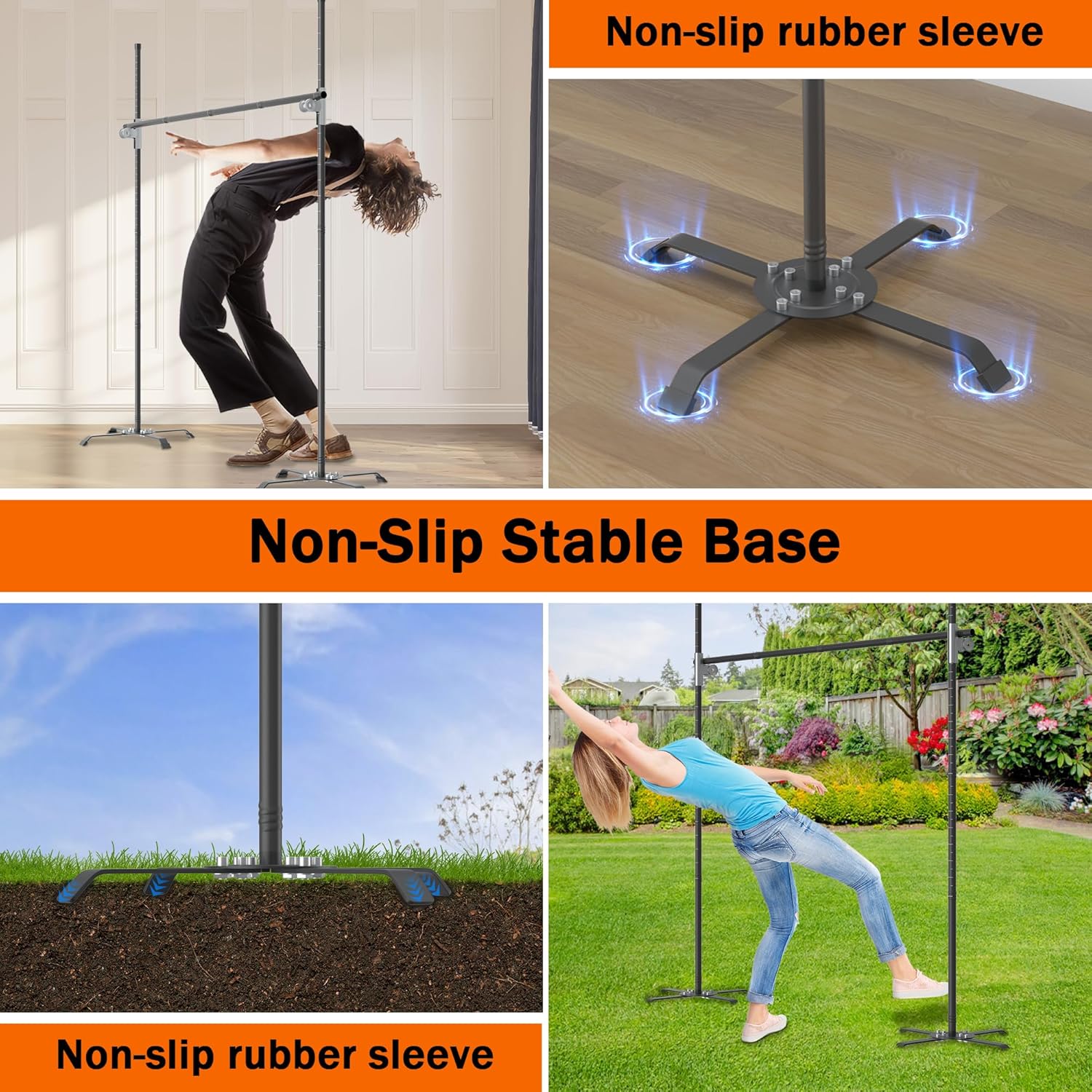 - Stable Base - Qufiona limbo stick comes with two four-claw bases featuring anti-slip rubber sleeves, providing high stability. Perfect for both indoor and outdoor settings, it stands firm without toppling.