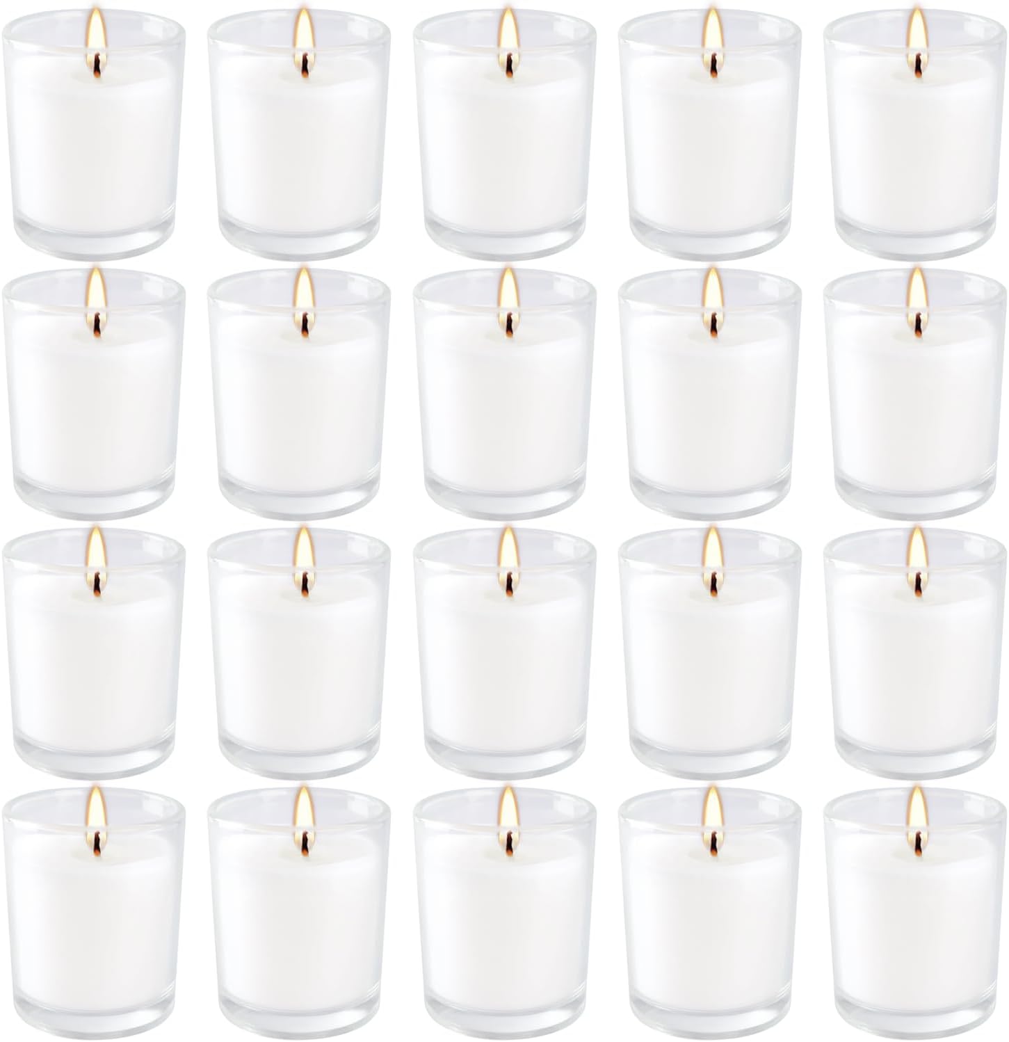 20 Pack Warm White Unscented Votive Candles-Clear Glass Filled Hand Poured Wax Candle Gifts for Aromatherapy Spa Weddings Birthdays Holidays Party& More (Warm White)