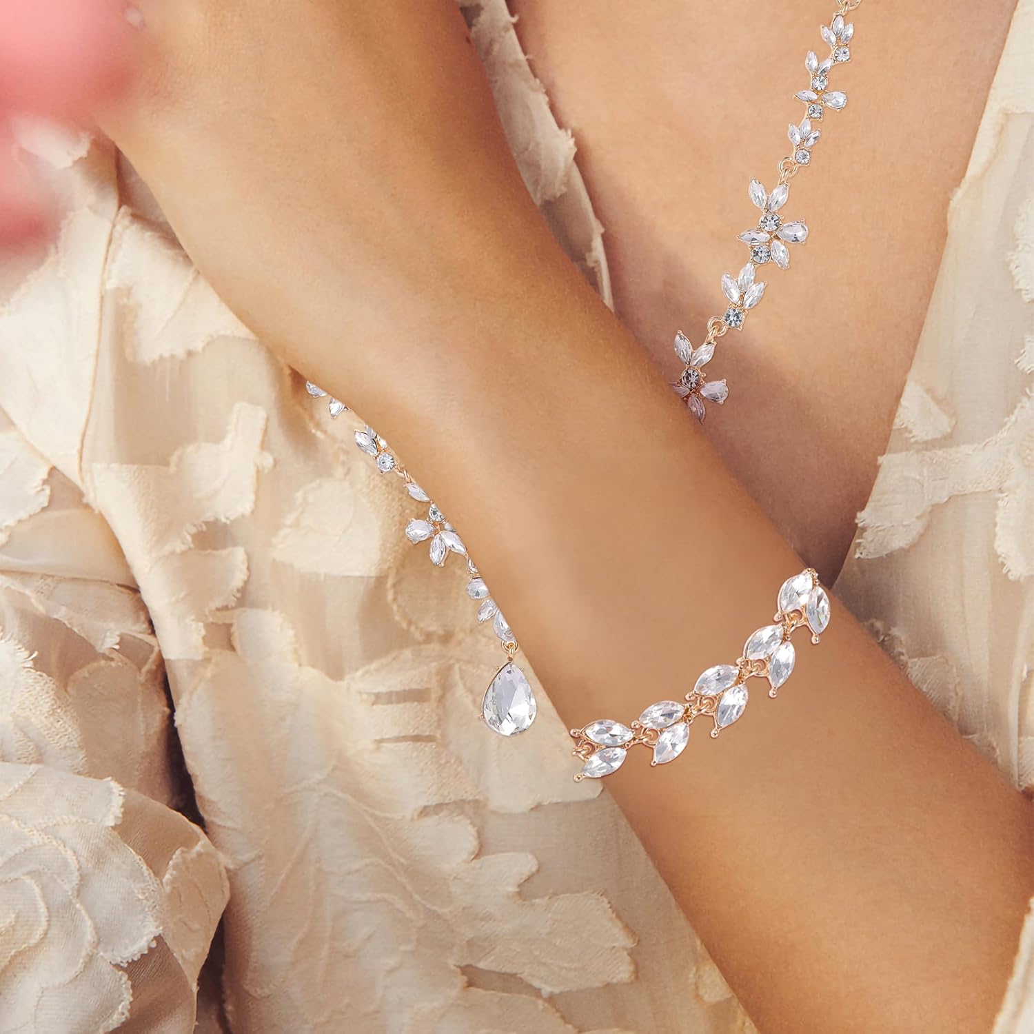 - Gold Wedding Bridal Necklace Jewelry Set for Bride:Exquisite Bridal Jewelry Set: This stunning set includes a necklace, bracelet, and earrings, perfect for a bride or bridesmaid on her special day.