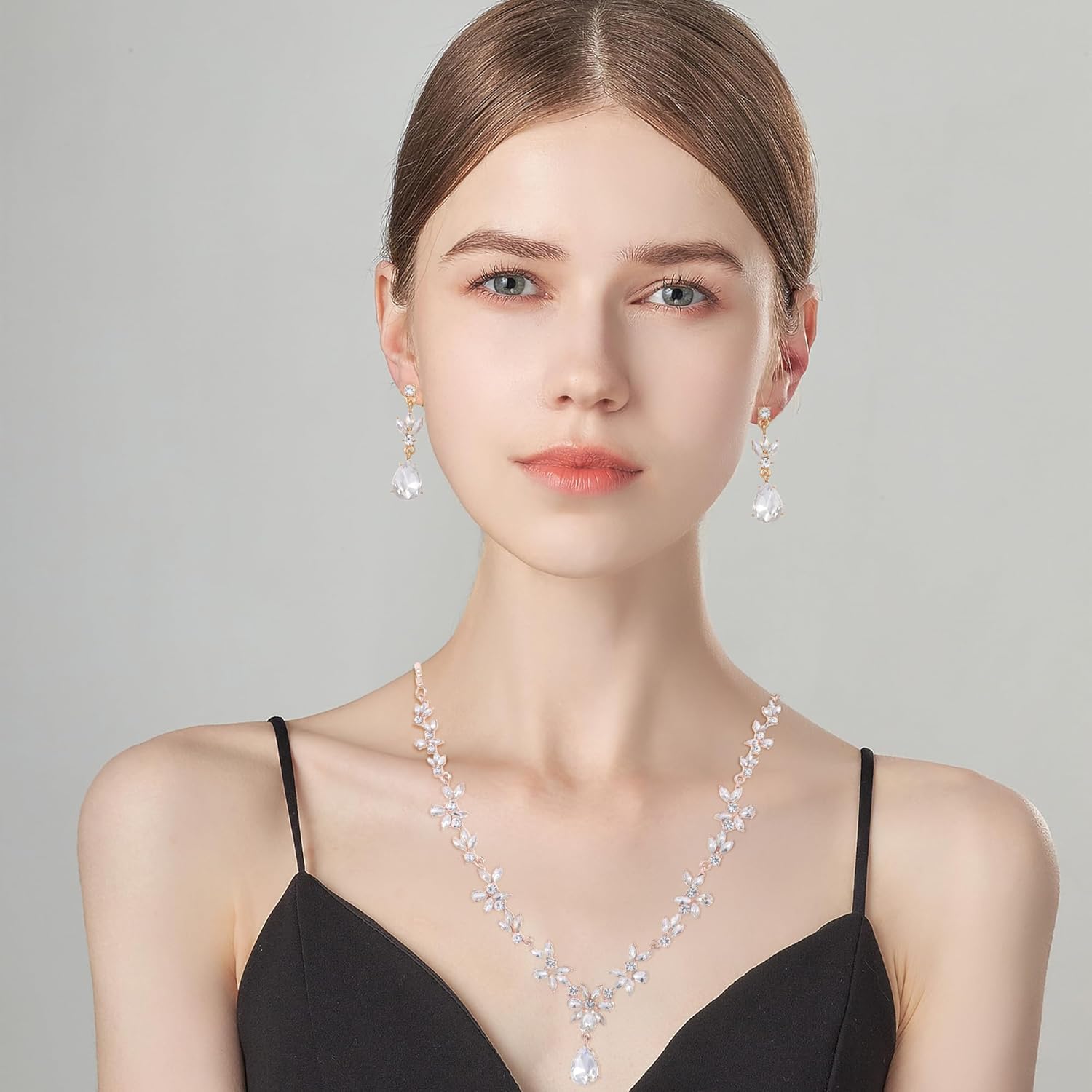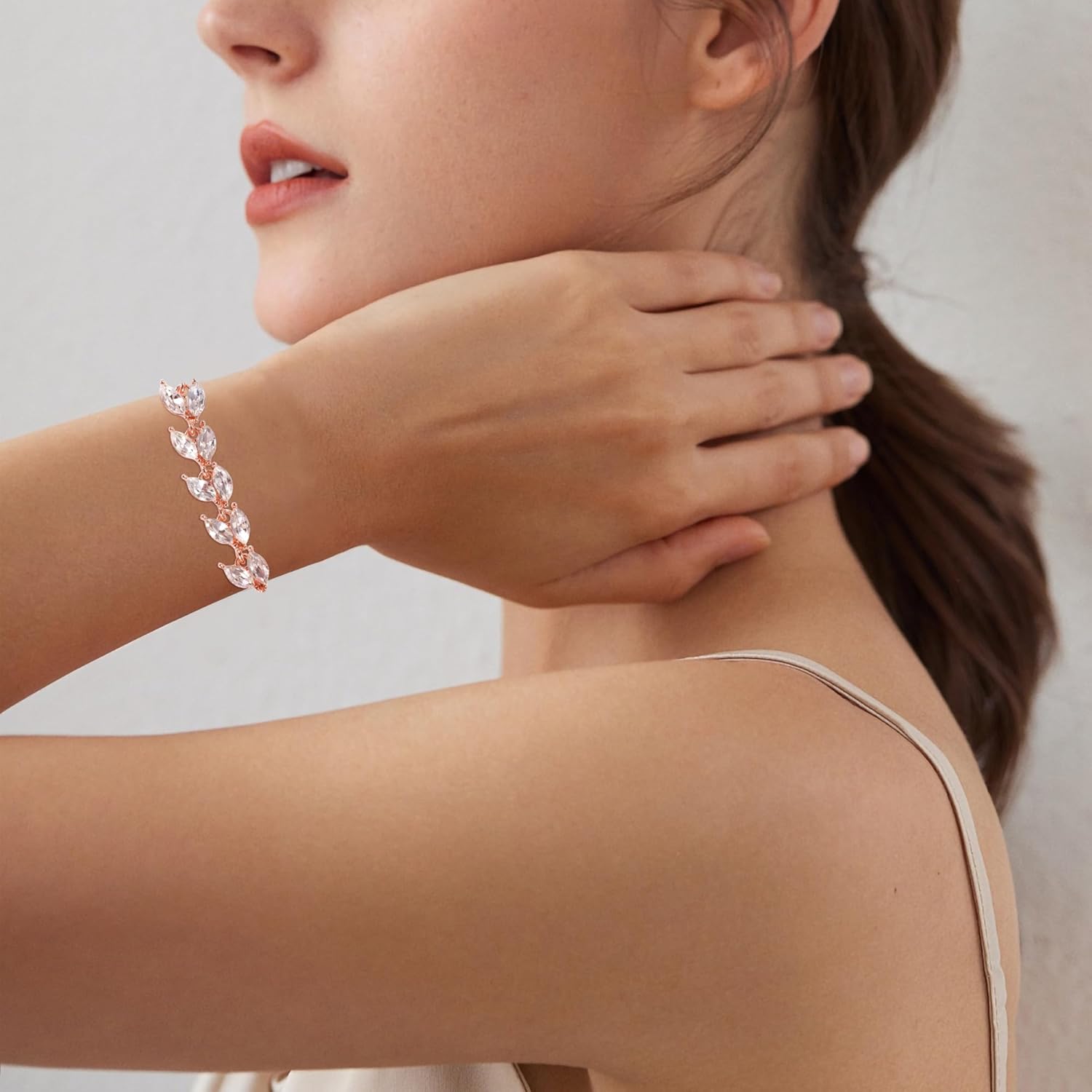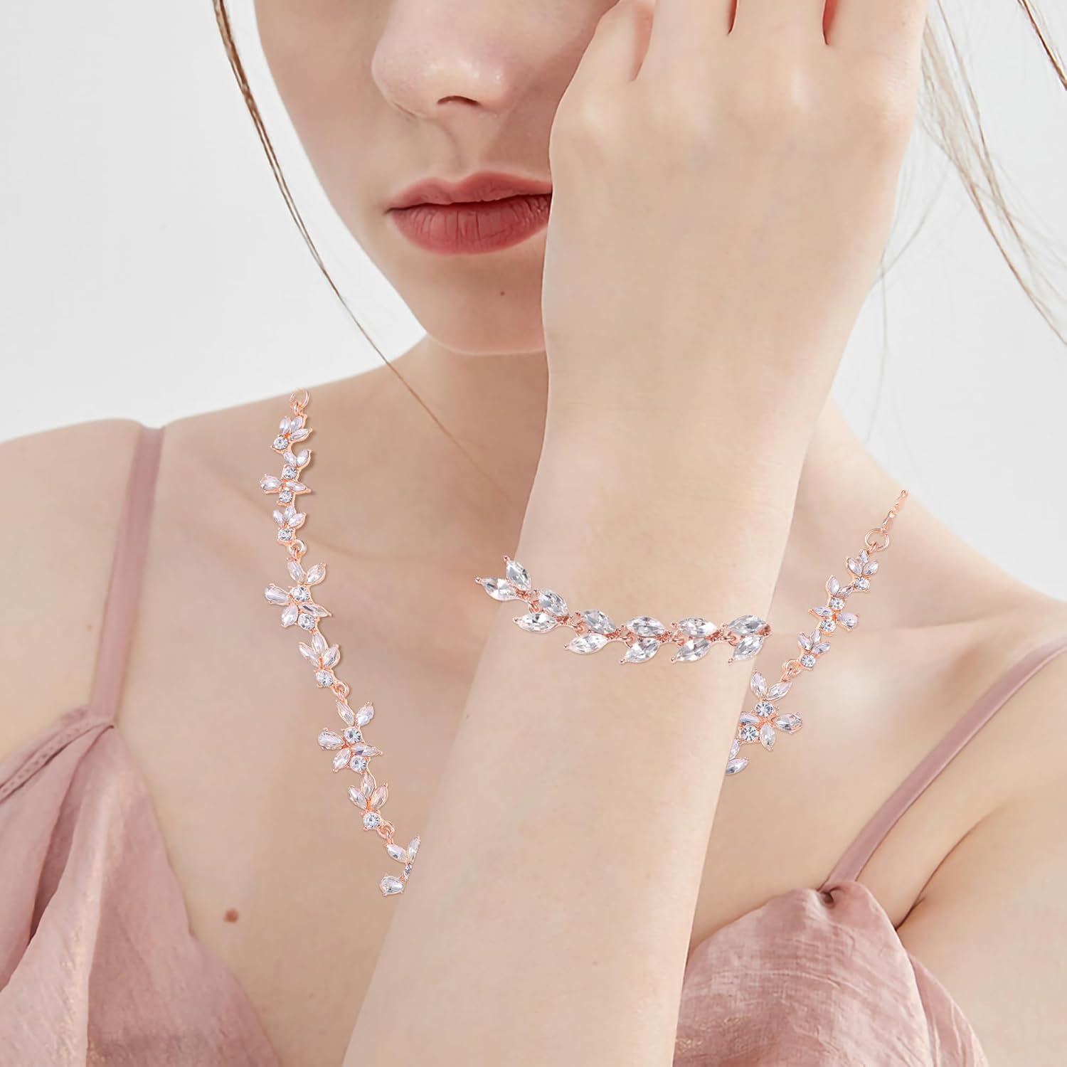 - Rose Gold Wedding Bridal Necklace Jewelry Set for Bride:Exquisite Bridal Jewelry Set: This stunning set includes a necklace, bracelet, and earrings, perfect for a bride or bridesmaid on her special day.