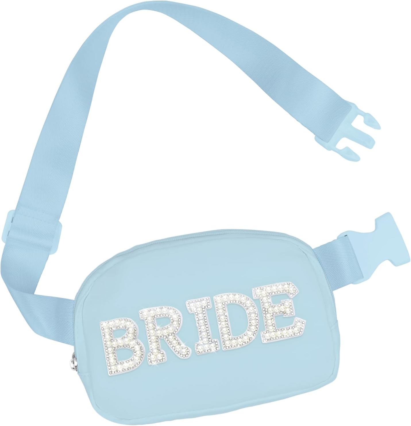 Lamyba Bride to be Gifts, Bridal Shower Gifts, Pearl Patch Bride Fanny Pack for Bachelorette Party Wedding day, Adjustable Strap Waterproof Mrs Crossbody Bag, Blue