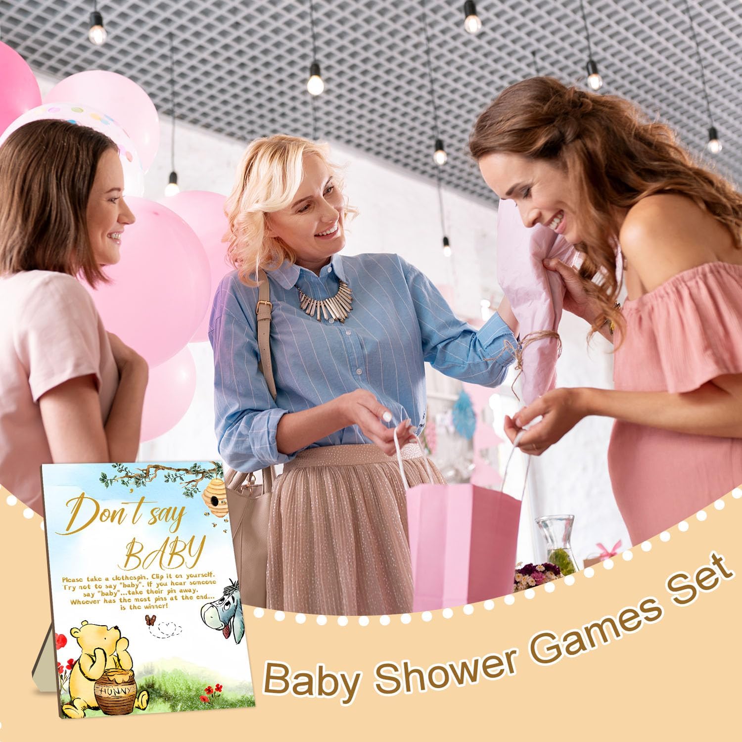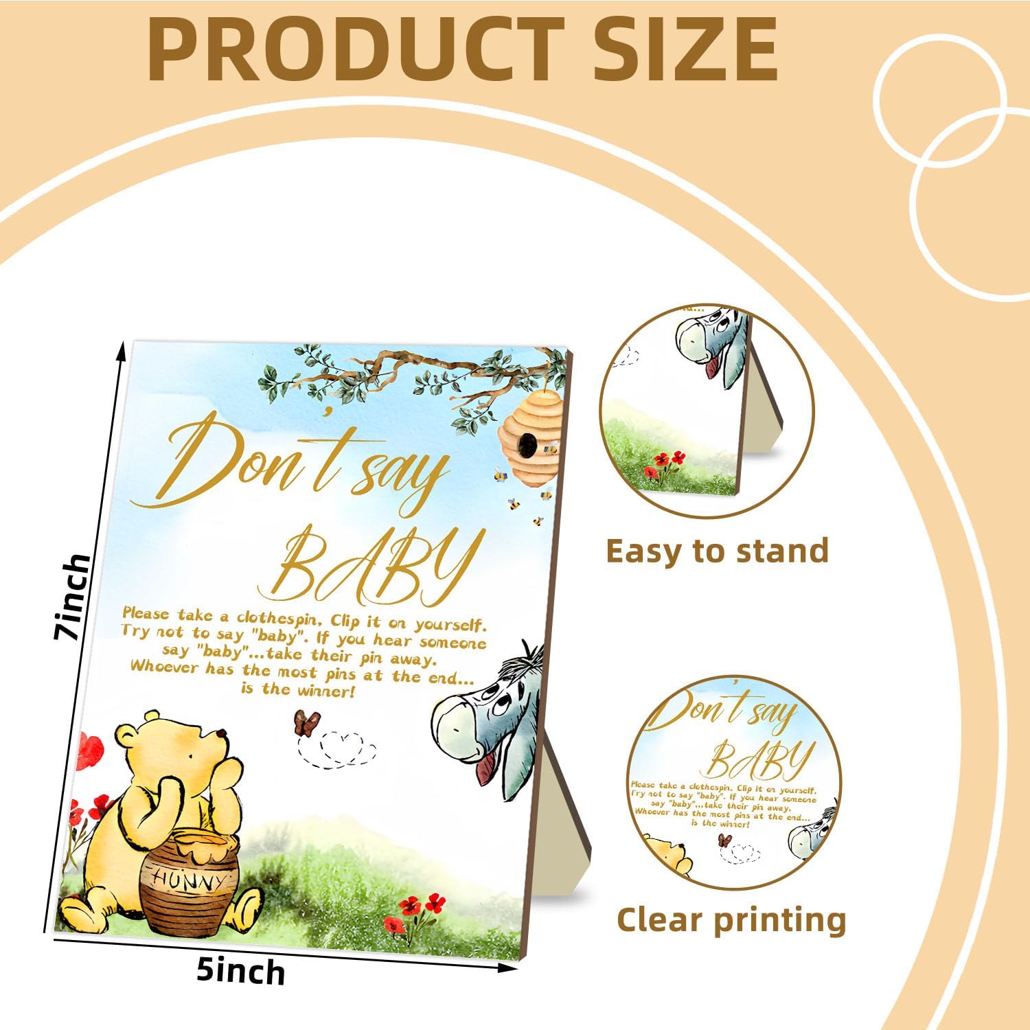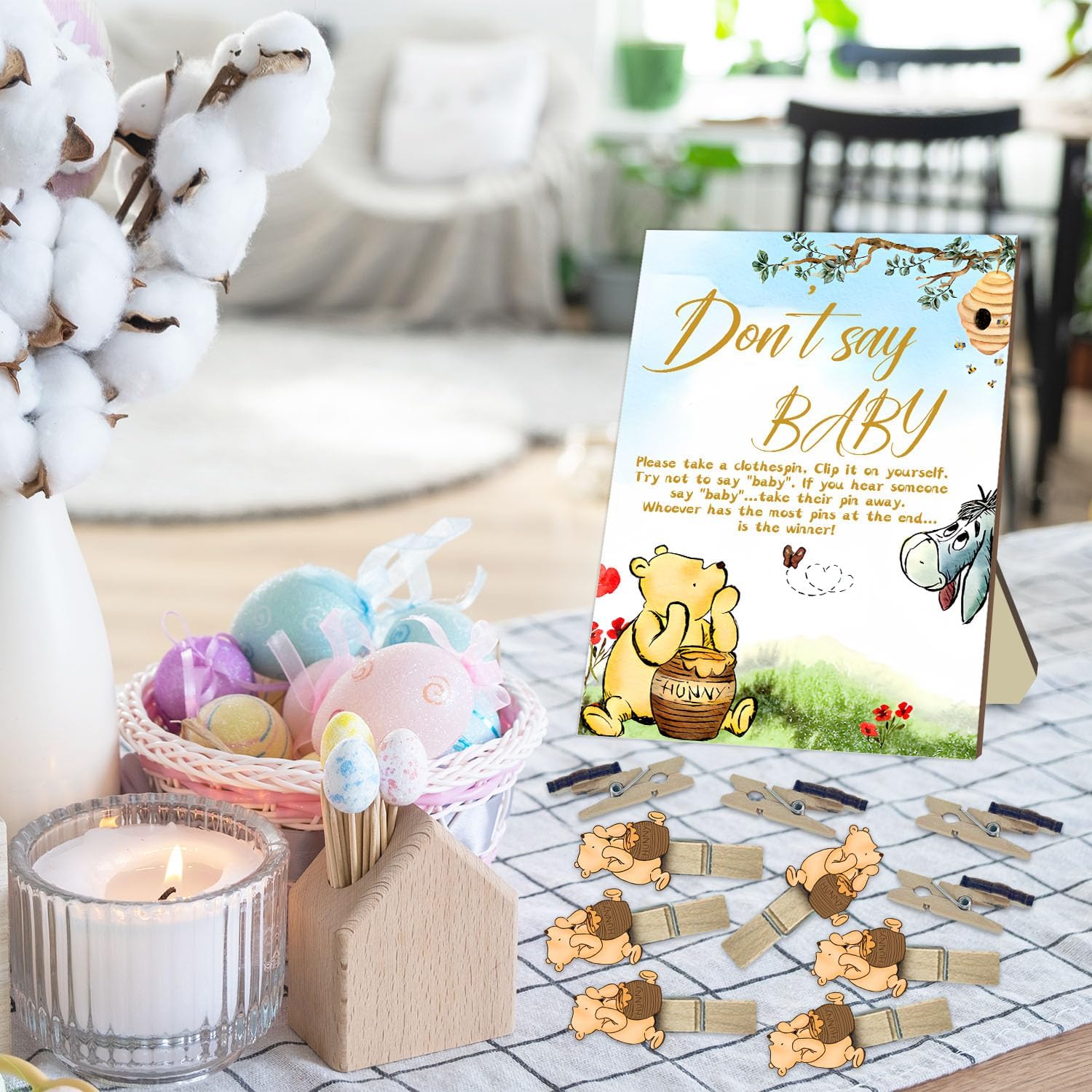 the Pooh Baby Shower Game Set, Include 1 Winnie Don't Say Baby Game Sign and 20 Mini Winnie Clothespins, Baby Shower Game Decor, Baby Shower Party Decorations Supplies