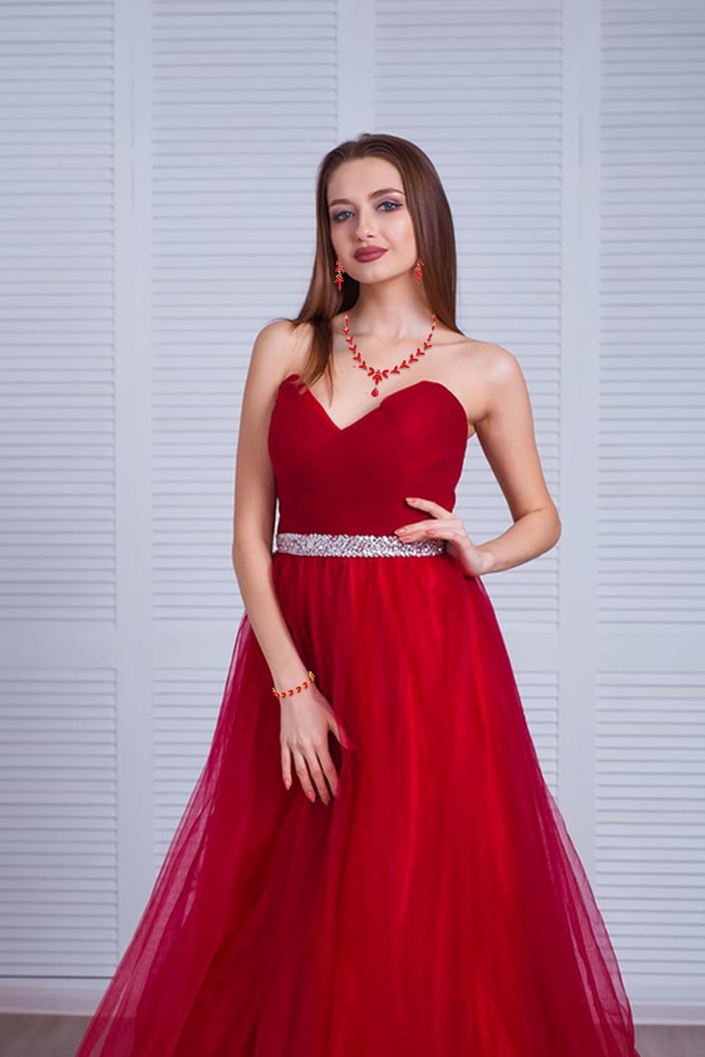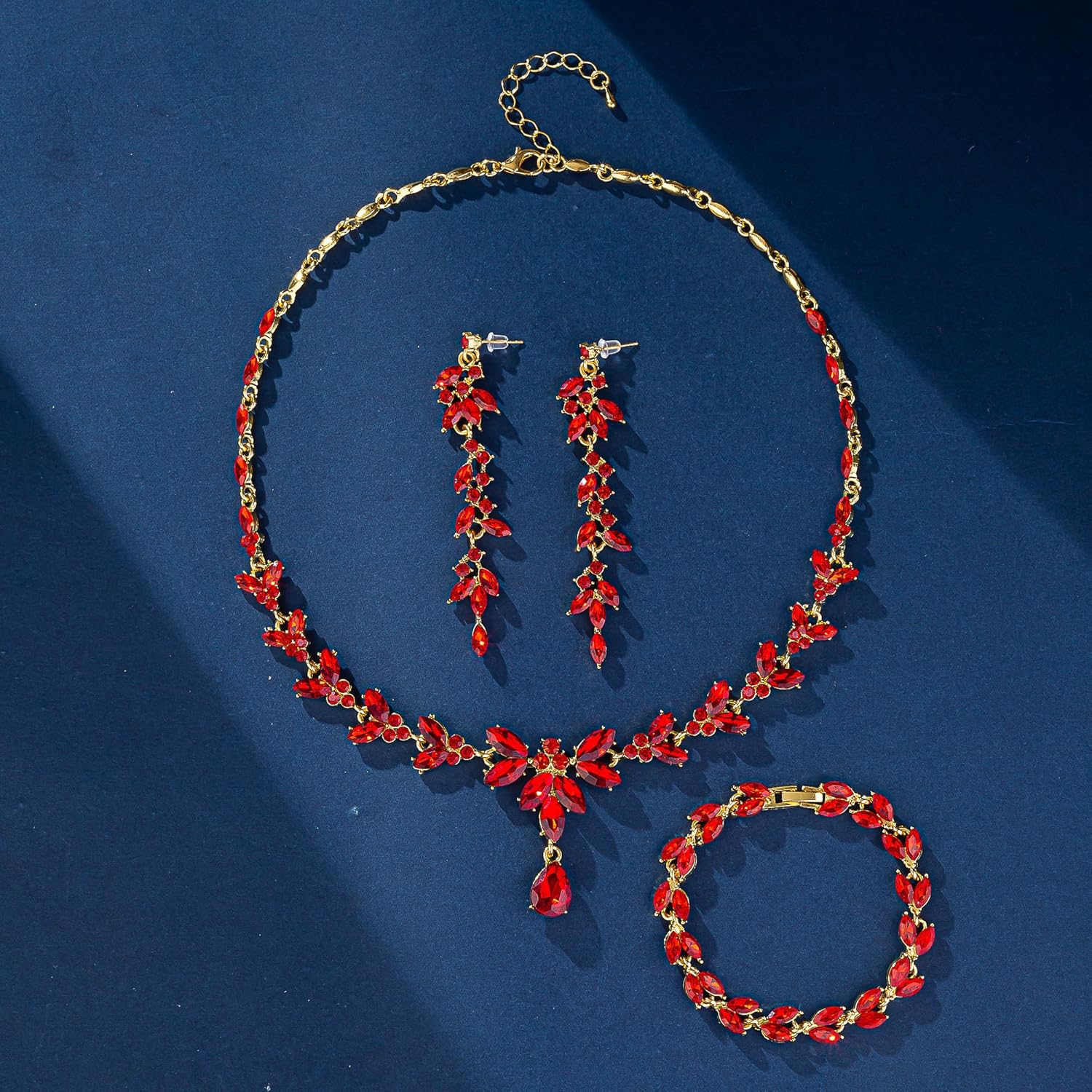 - ♥ Leaf design red crystal Y necklace statement earrings set for women ♥: Women red gala jewelry set is gift packaged, which is suitable for Wedding / Engagement / Valentines-day / Anniversary / Prom / Dinner party / Birthday party, any occasion you want to be more charming.