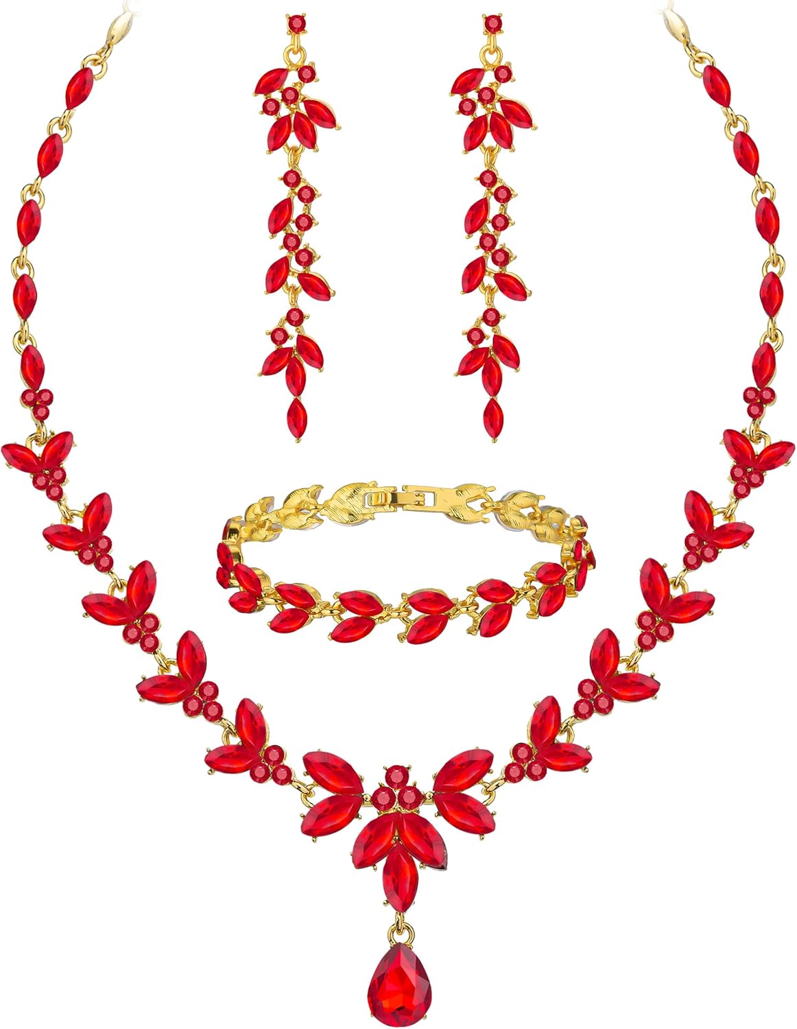 - ♥ Fancy shiny elegant red diamond jewelry set for wedding / prom / homecoming / quinceanera ♥: Formal bling red and gold jewelry for women evening wear can always keep pace with fashion, never goes out of style. Easy to match any outfits. It makes you impressive anytime any occasion. You are indispensable to the world. ♥Gift Options♥: Each set comes with a gift box. Ready for gifting and makes a meaningful gift for your loved ones and for any occasions. e.g. Lover, girlfriend, fiancee, wife, mot