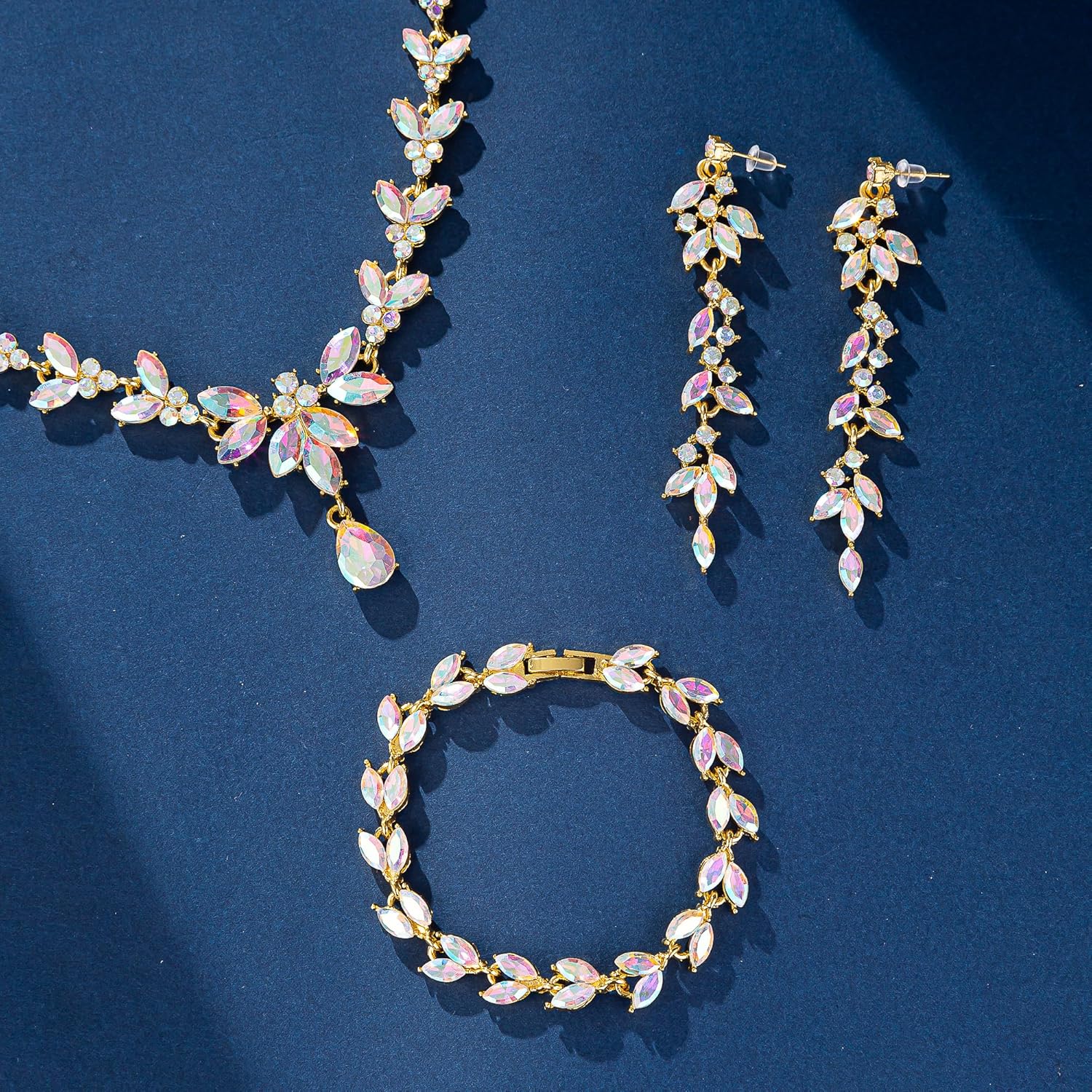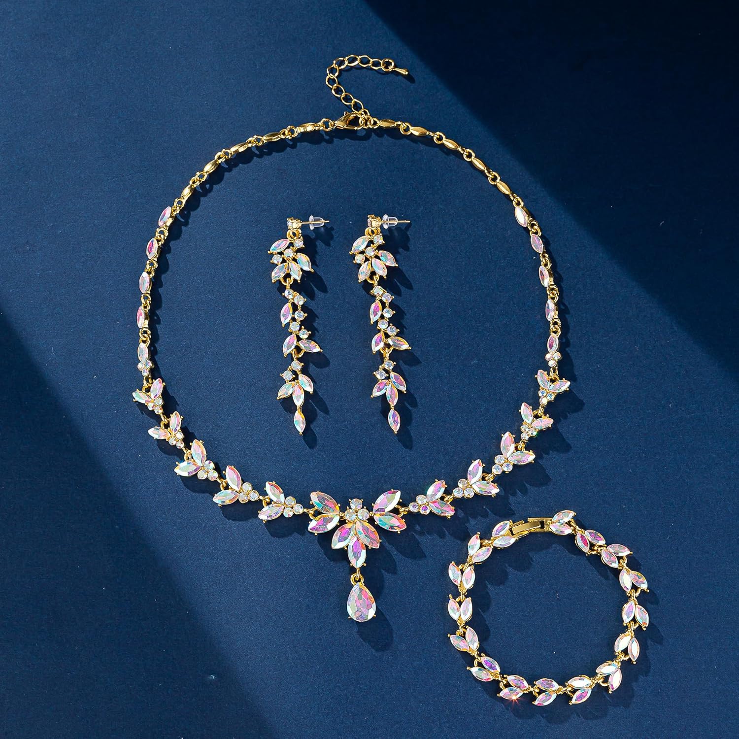 Wedding Jewelry Sets for Bride Bridesmaid Bridal Jewelry Set for Women Wedding Crystal Necklace Earrings Bracelet Set for Party Prom Jewelry