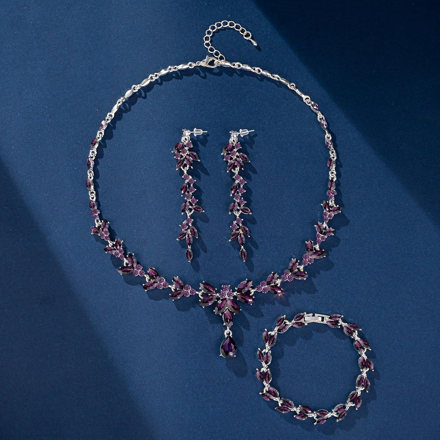 - Fashion shiny elegant purple diamond rhinestone crystal necklace earrings bracelet jewelry set for women evening party: Formal bling purple jewelry for women evening wear can always keep pace with fashion, never goes out of style. Easy to match any outfits. It makes you impressive anytime any occasion. You are indispensable to the world. ♥Gift Options♥: Each set comes with a gift box. Ready for gifting and makes a meaningful gift for your loved ones and for any occasions. e.g. Lover, girlfri