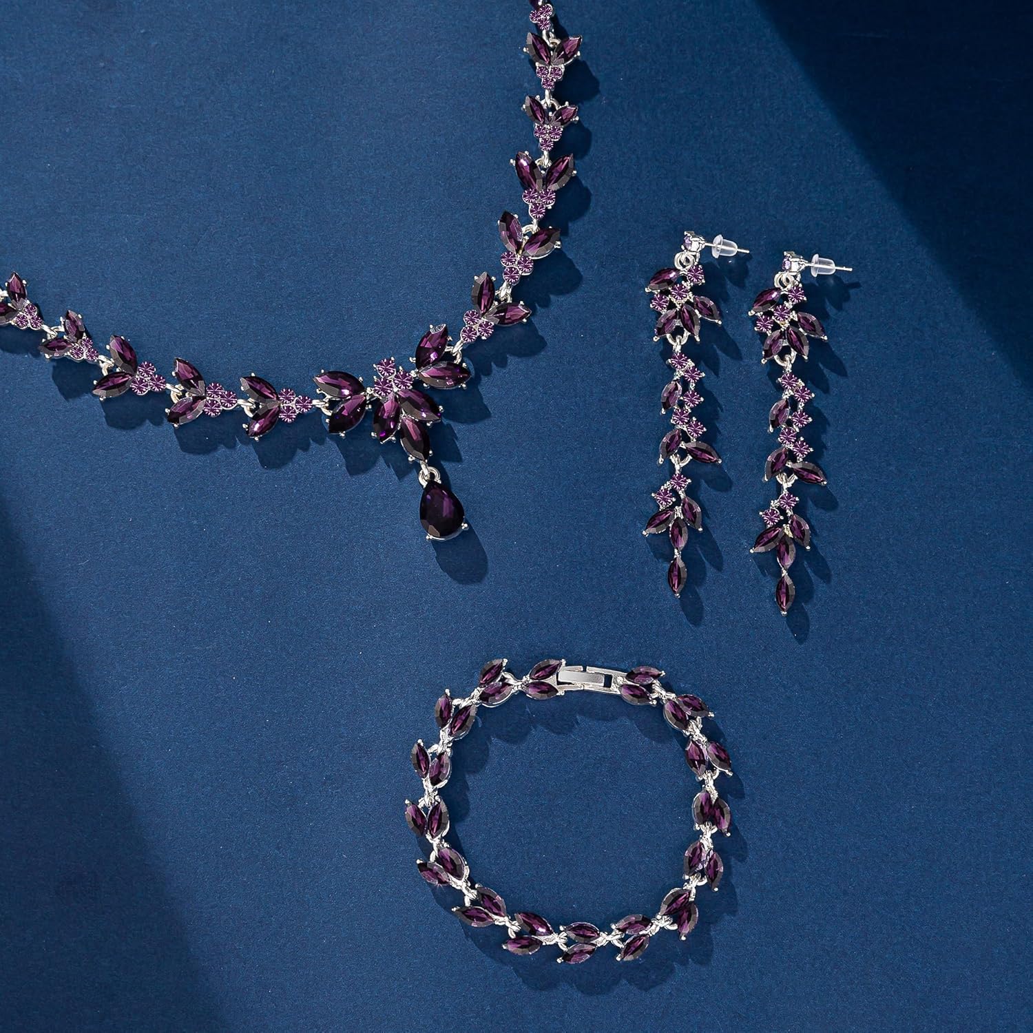 - Leaf design purple crystal necklace for women: Women purple gala jewelry set is gift packaged, which is suitable for Wedding / Engagement / Valentines-day / Anniversary / Prom / Dinner party / Birthday party, any occasion you want to be more charming.