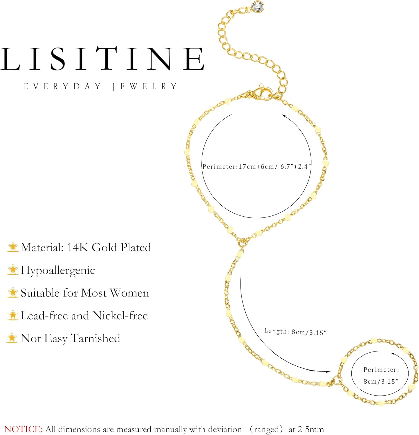 Listine Hand Chain Bracelet 14K Gold Plated Ring Bracelet Hand Chain Trendy Stuff for Women Dainty Hand Bracelets with Finger Ring Hand Jewelry for Women