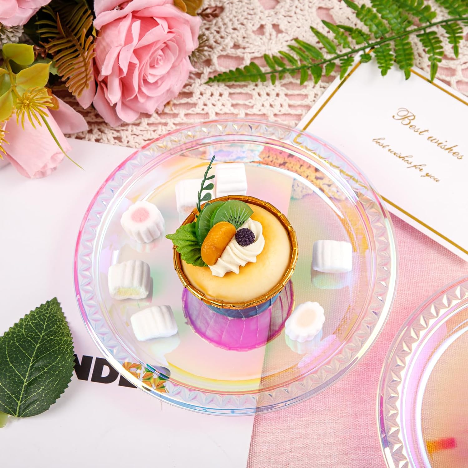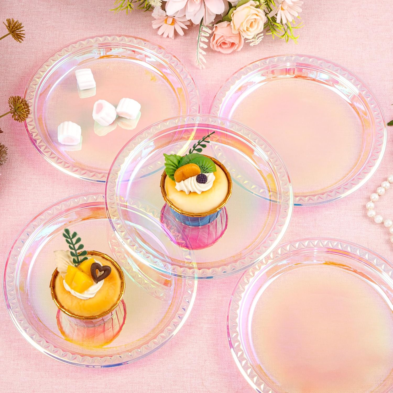 - 150 Pcs Great Value: Come with 150 pcs 7 inch iridescent plastic plates, perfect for serving appetizers, salads, desserts, cakes, food samples, or small portions. Whether you're hosting a birthday party, barbecue, picnic, or simply stocking up for family meals or everyday use, this pack provides both style and exceptional value for your needs