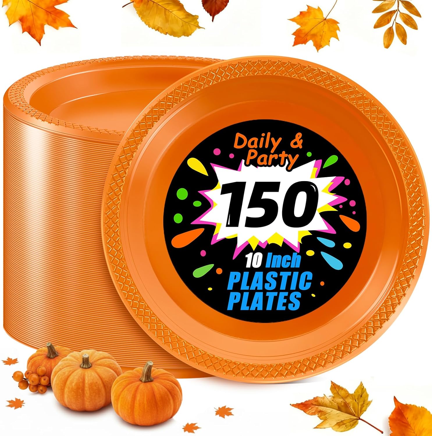 - Value and Versatile: These 150 pcs orange plastic plates 10 inch ensures that you have an ample supply of plates for all your needs. Whether you're using them for a family meals, birthday party, barbecues, picnic, or simply stocking up for everyday use, this pack offers great value for money