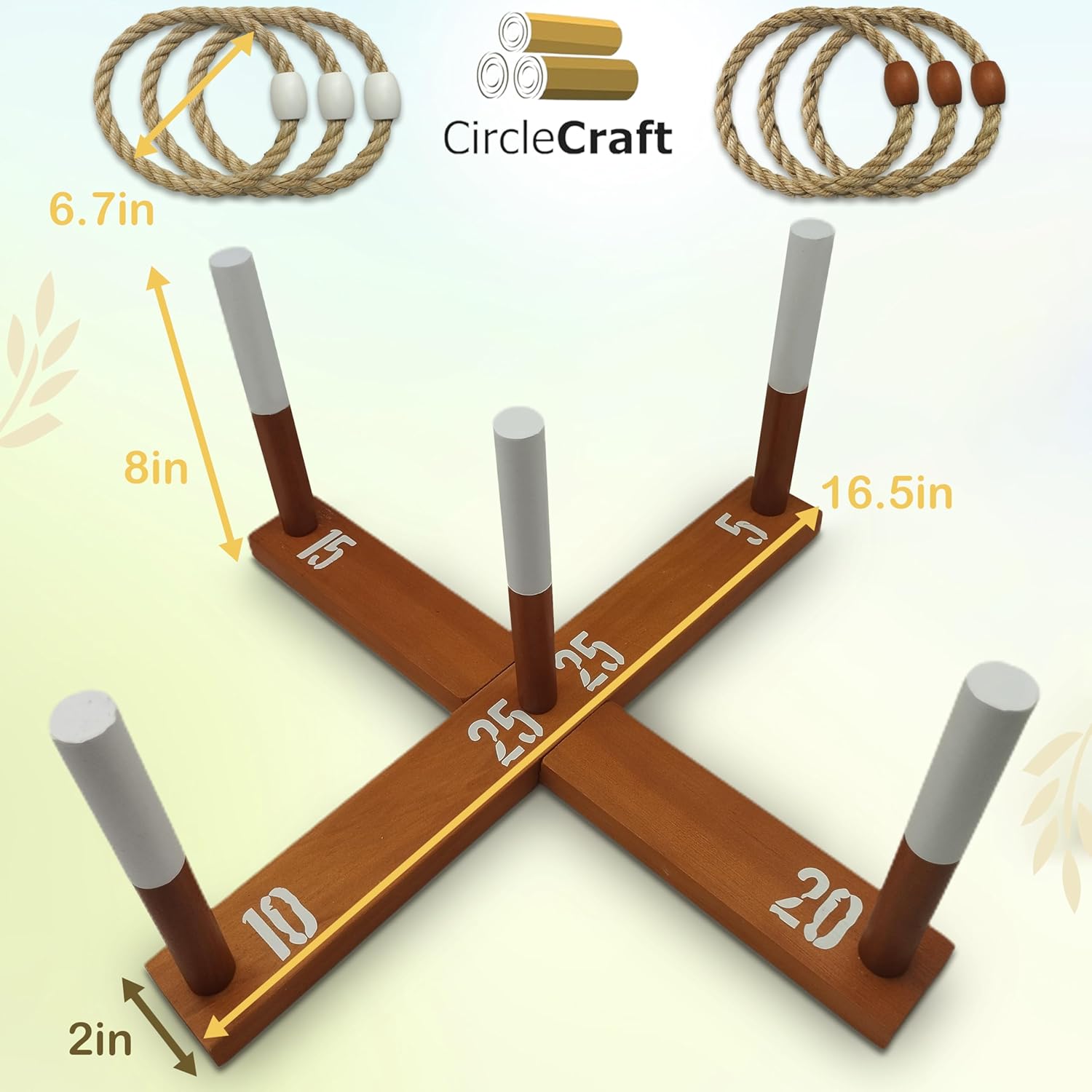 CircleCraft Rustic Ring Toss Game for Kids & Adults – Outdoor Yard Games with Rope Rings, Portable Wooden Lawn Game for Family Fun, Backyard, Beach, Camping & Picnic Activities for Christmas & Easter