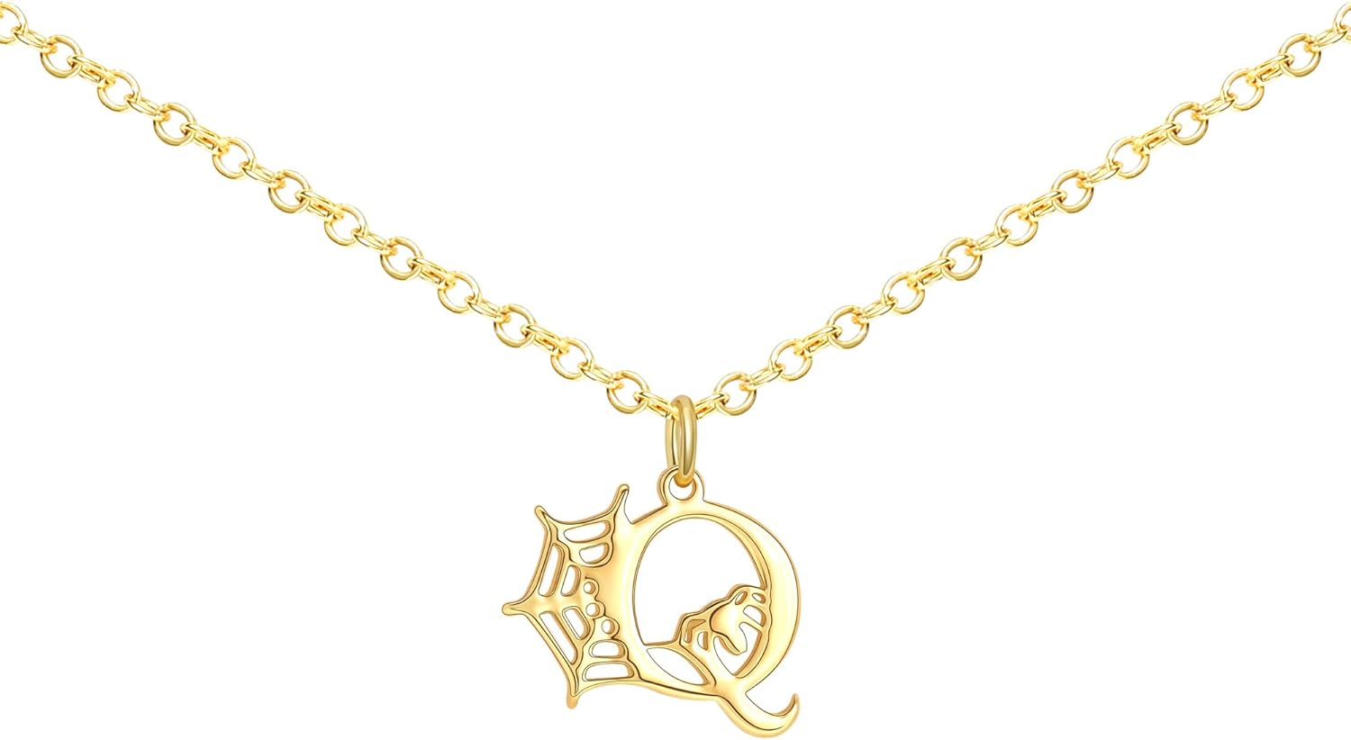 - Gifts for Women:Halloween necklace with spider web and initial add a twist to your Halloween costume. You will love teen Grl gifts trendy stuff with initial Q.