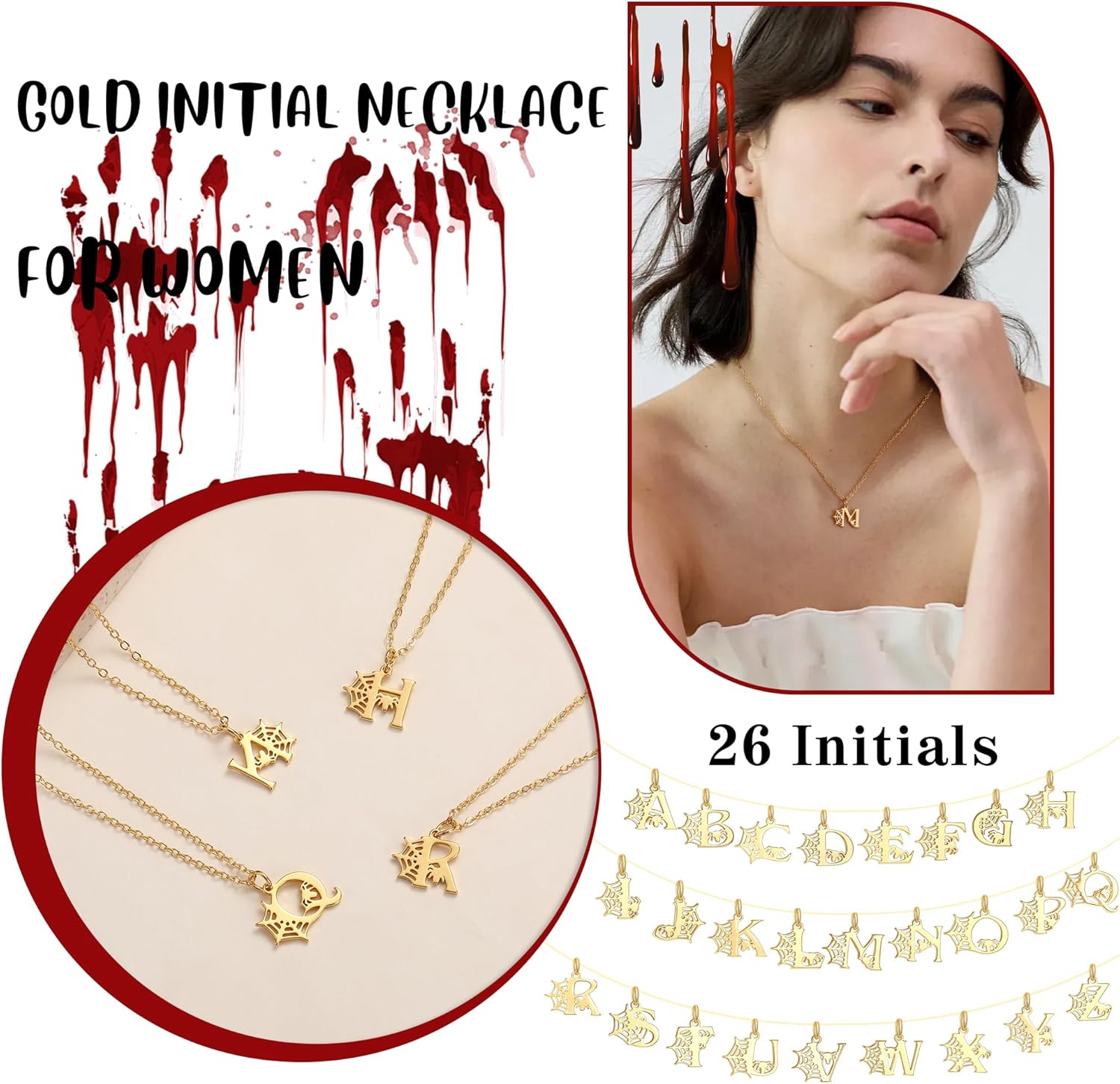 Halloween Necklace Halloween Gifts for Women Initial Necklace with Spider Web for Teen Girl Adjustable Dainty Gold Letter Necklaces for Her Girlfriend Daughter Halloweens Birthday Gift Basket Jewelry Decorations
