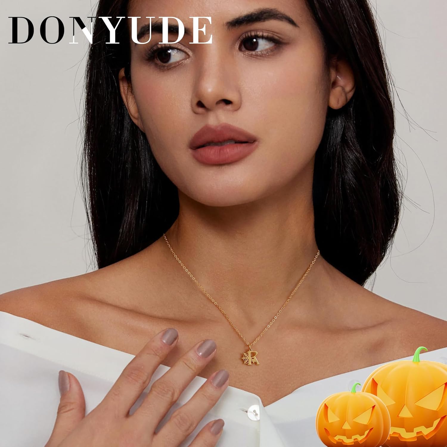 Halloween Necklace Halloween Gifts for Women Initial Necklace with Spider Web for Teen Girl Adjustable Dainty Gold Letter Necklaces for Her Girlfriend Daughter Halloweens Birthday Gift Basket Jewelry Decorations