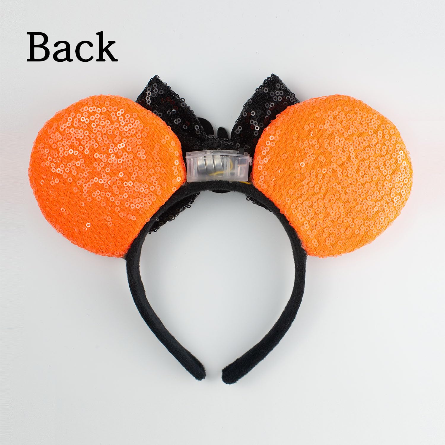 - 【DESIGN】Orange light up mouse ear headbands combined with sequin bow, LED lights are hidden in the ears, the light switch is on the back of the headband, when the light turned on, the headband will reflect rainbow-like colors, shining and dazzling, which make you more eye-catching. The light has only one button, it will automatically changes the two modes of fast flashing and slow flashing