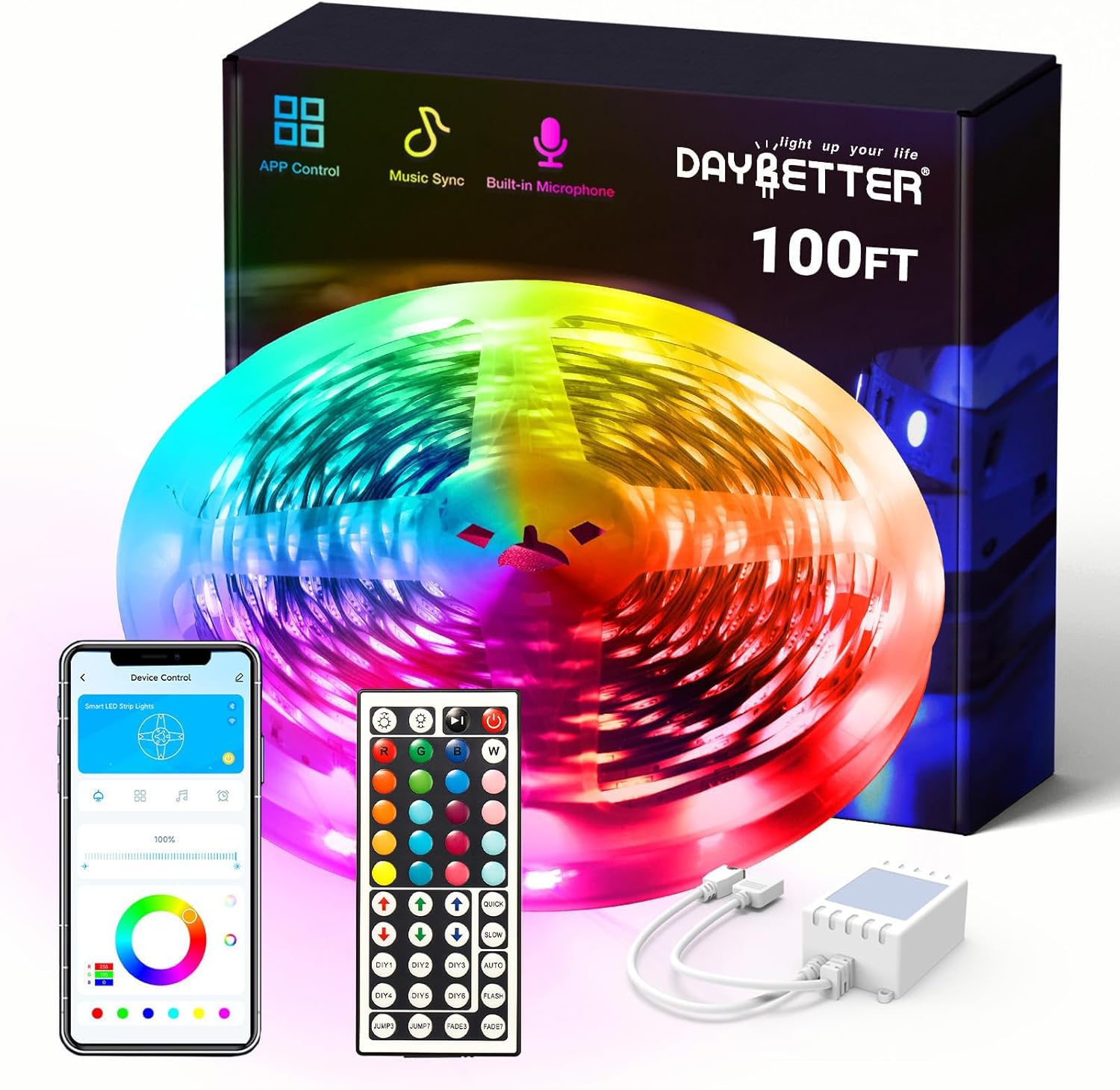 DAYBETTER Smart RGB Led Strip Lights, 100ft Led Lights for Bedroom with App Control, Multicolor Changing Led Light Strips Apply for Home Decor, Living Room, Kitchen, Home Party Decoration