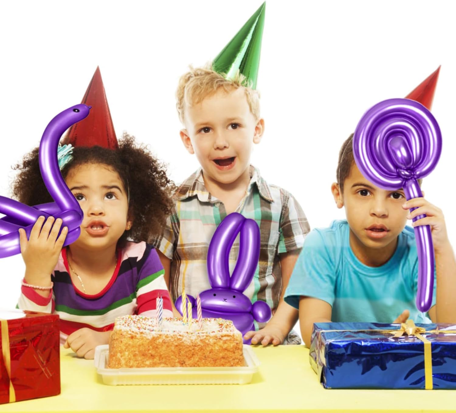 KAWKALSH 260 Metallic Purple Long Balloons for Balloon Garland Thickening Skinny Latex Twisting Animals Modeling Christmas Birthday Wedding Party Festival Decorations 100pcs