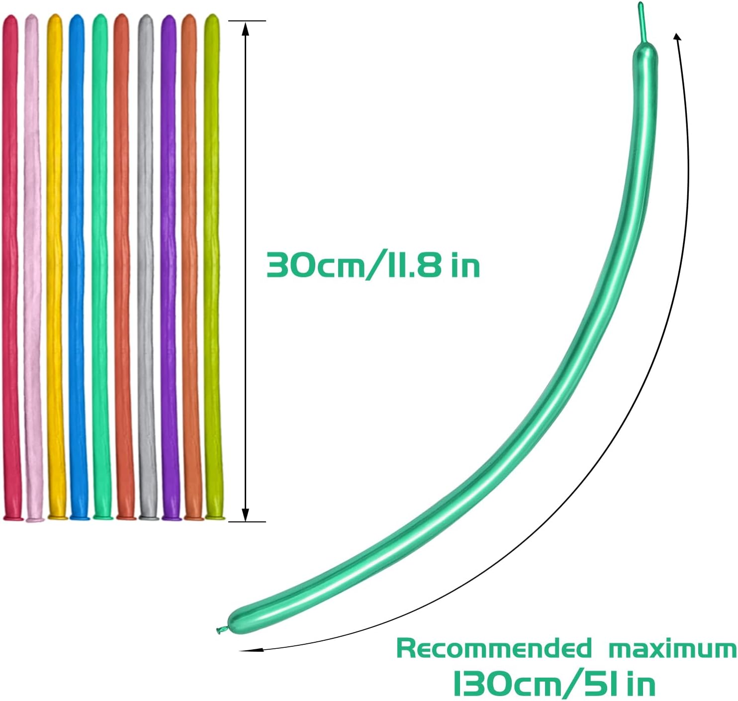 - EASY TO USE: each uninflated long balloon is 11.8 inches long and up to 51 inches when inflated. Please use a hand pump to inflate the long balloon, the twisted balloon is perfect for making various shapes, such as flowers, people, plants, butterflies, hats, dinosaurs, birds, puppies and so on. Novelty and chic, easy to operate, let you experience the irreplaceable fun of animal art DIY!