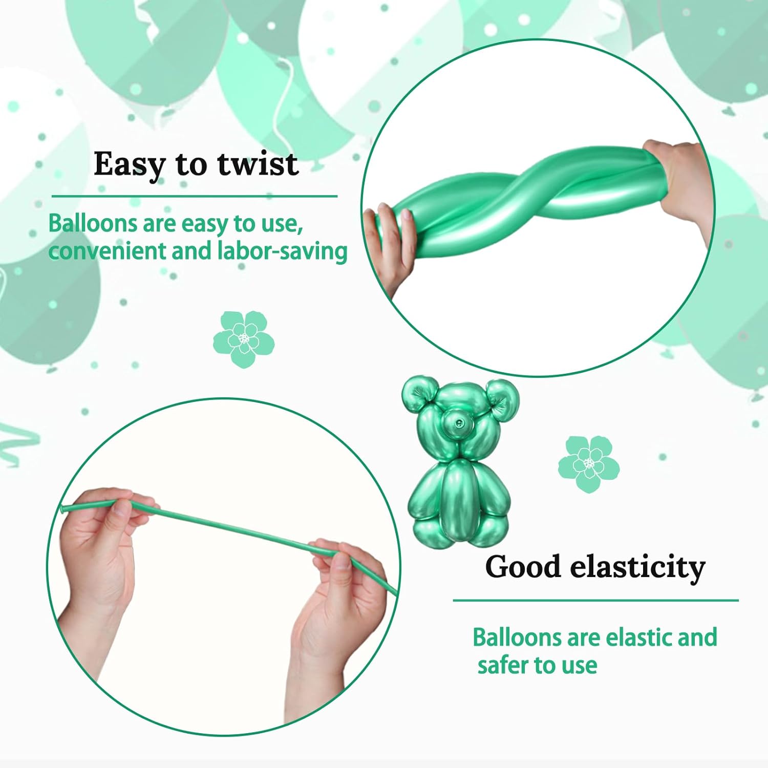 - PREMIUM QUALITY AND DURABLE: Our animal balloons are made of natural latex, which is 20% thicker than ordinary modeling balloons and can be easily folded into different shapes. Our factory strictly controls every step of purchasing, production and making to ensure the quality of the products are top quality. 360 balloons can keep a good shape for a long time after inflating, Very suitable for professional balloon artists.