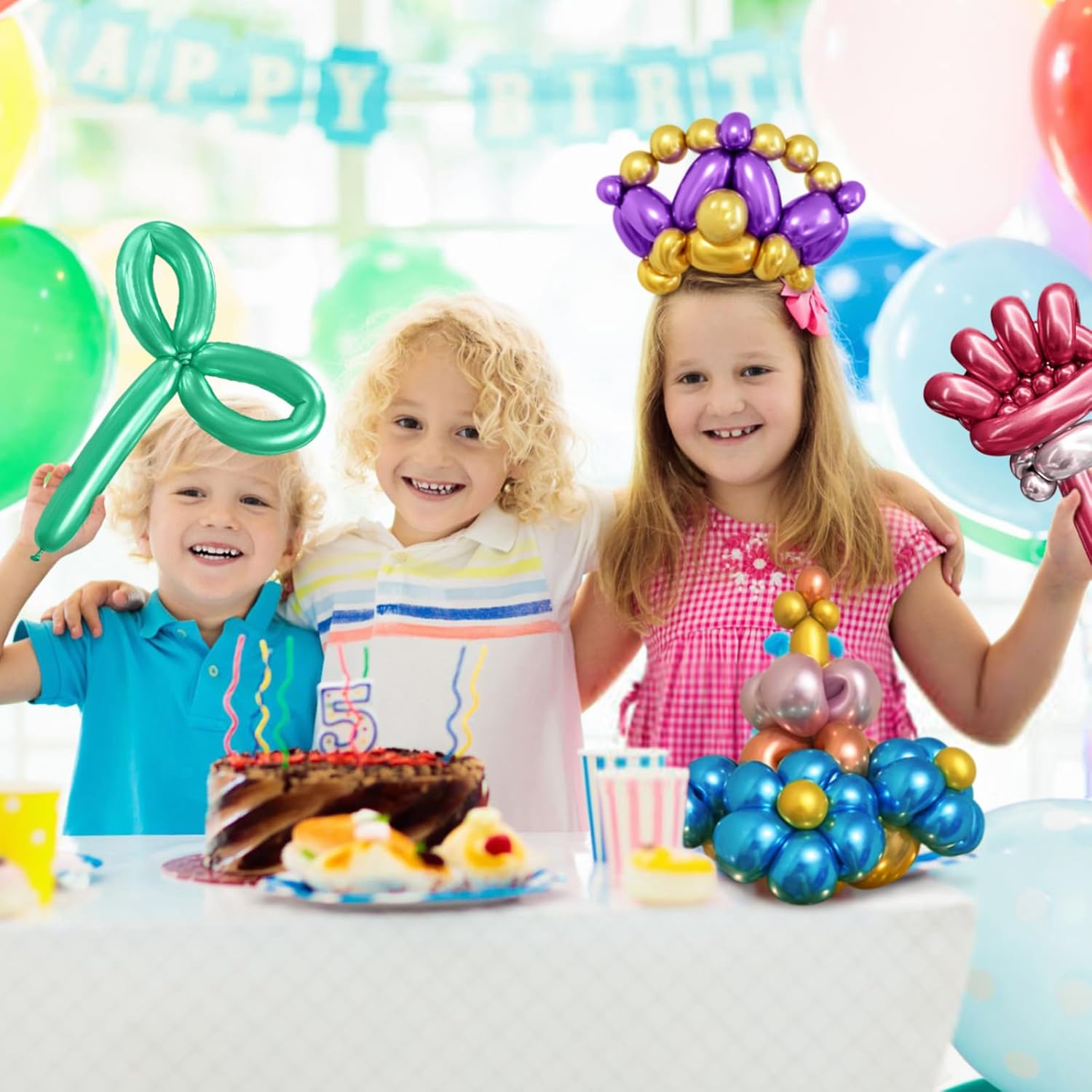 KAWKALSH 260 Metallic Multi Long Balloons for Balloon Garland Thickening Skinny Latex Twisting Animals Modeling Christmas Birthday Wedding Party Festival Decorations 100pcs