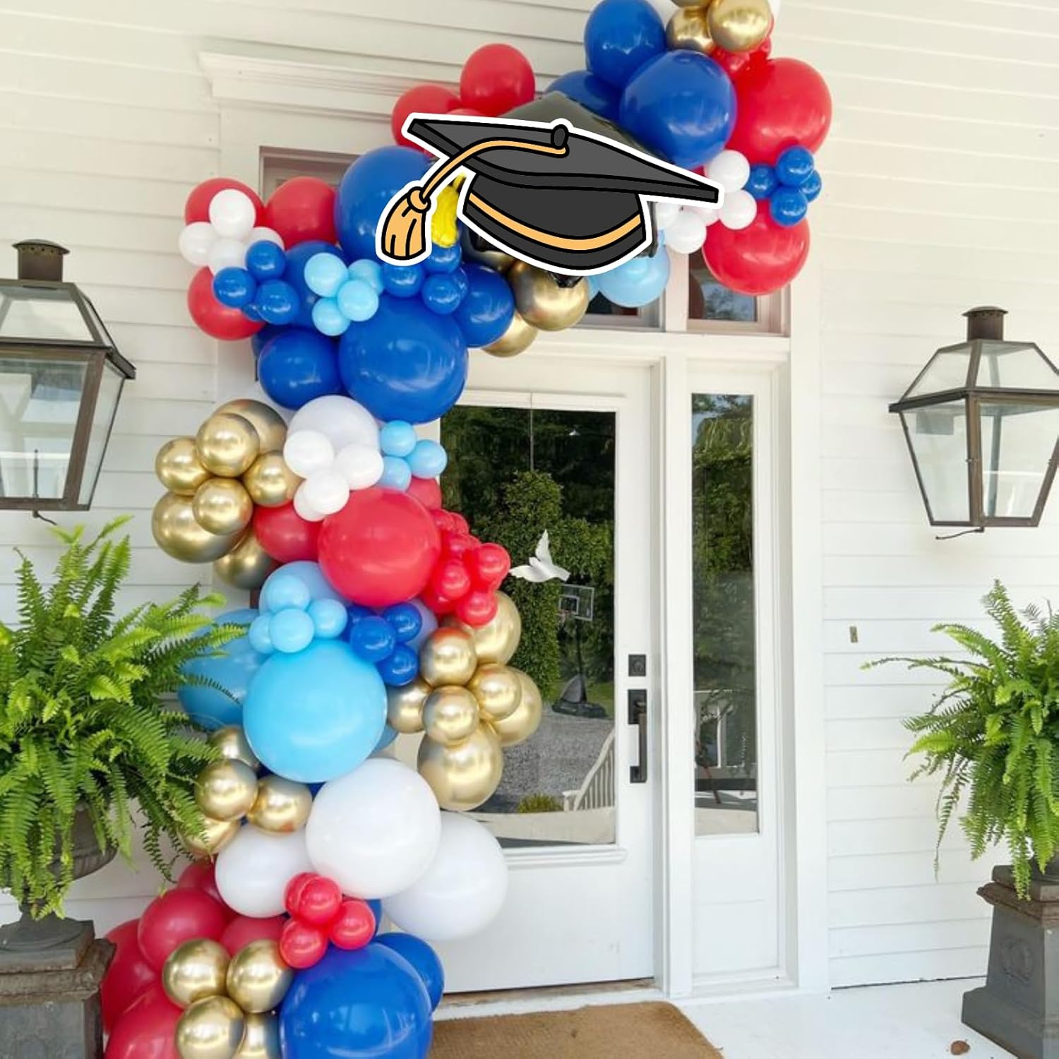 - Packaging Includes:This set includes18-inch-1×red,1×navy blue;12-inch-16×red,16×navy blue,16×white,16×pearl light blue,15×red blue silver confetti balloon;5-inch-9×red,5-inch-9×navy blue,5-inch-8×white,5-inch-9×pearl light blue,along with a balloon strip and 2 rolls of balloon dispensing.